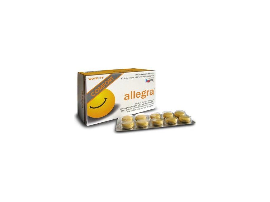 Allegra COMFORT je doplněk stravy, který obsahuje unikátní kombinaci esenciální aminokyseliny L-tryptofan a vitaminu B6.