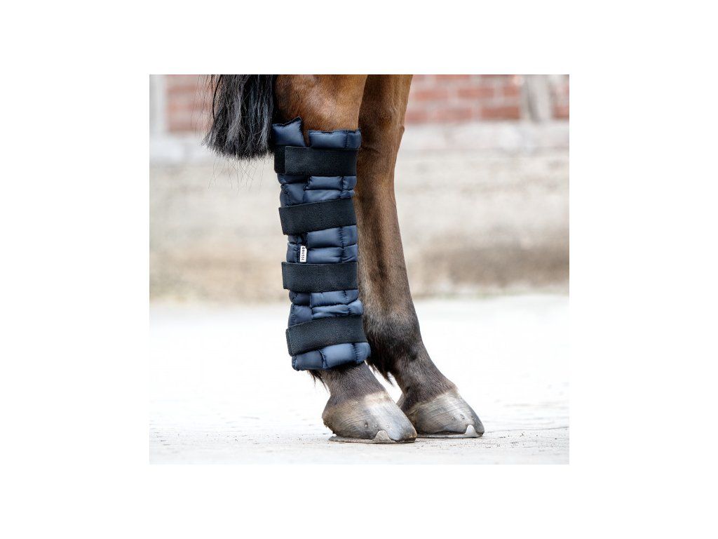 Pomocí této bandáže můžete snadno zchladit nohy koně během zranění nebo po tréninku. Bandáž lze nachladit v mrazáku a poté připevnit k noze pomocí čtyř elastických suchých zipů. V bandáži je 24 samostatných pevně integrovaných chladicích vaků, které si při ochlazení zachovávají pružnou konzistenci, a lze je tak optimálně přizpůsobit noze a zajistit dobrý povrchový kontakt a s tím i spojený chladivý efekt. Vnější materiál je vyrobený z odolného polyesteru 420D. Cena je za jeden kus. Dodáváno v tašce. Bandáž lze použít jak na přední, tak zadní nohy.
