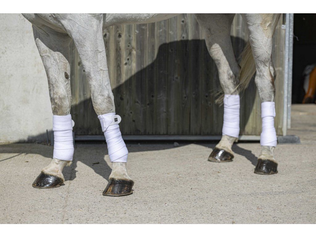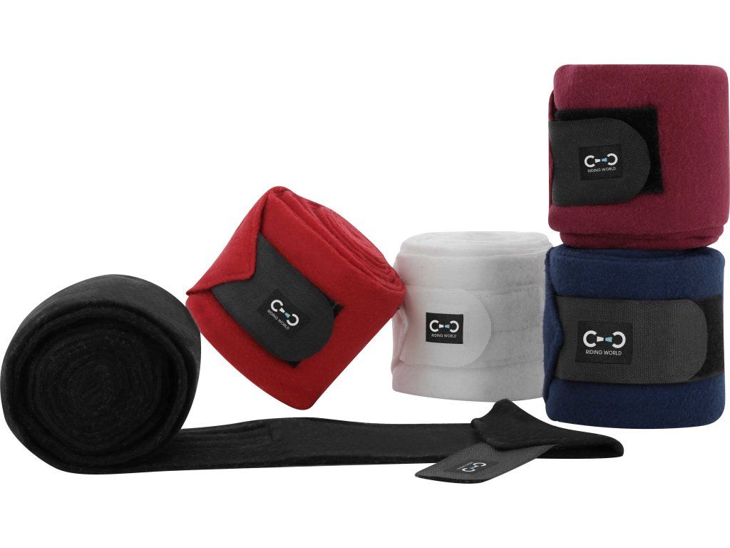 Sada 4 bandáží z měkkého fleecového materiálu o gramáži 220/240 g/m². Každá bandáž je dlouhá 3 metry a široká 10 cm. Materiál je odolný a snadný na údržbu. Mají zapínání na suchý zip, který zajišťuje rychlou a snadnou manipulaci. Lze je prát v pračce na 30 °C, ale nesušte v sušičce.