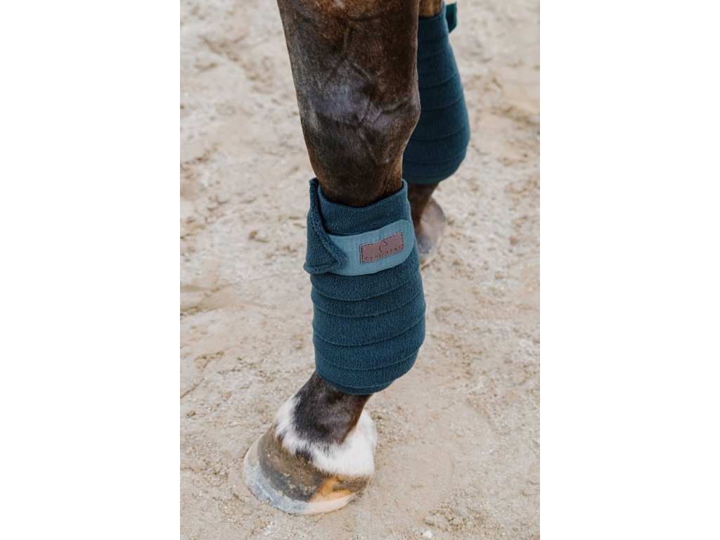 Fleecové bandáže jsou měkké, prodyšné a zároveň poskytují potřebnou oporu šlachám a kloubům. Materiál dobře drží tvar, snadno se udržuje a je příjemný na dotek. Bandáže mají výšku 12 cm a délku 3 m, což umožňuje pohodlné a bezpečné omotání nohou koně. Prodávají se v sadě po 4 kusech a jsou ideální volbou pro ochranu a podporu nohou při práci i odpočinku. Jsou vhodné pro každodenní trénink i transport koně.