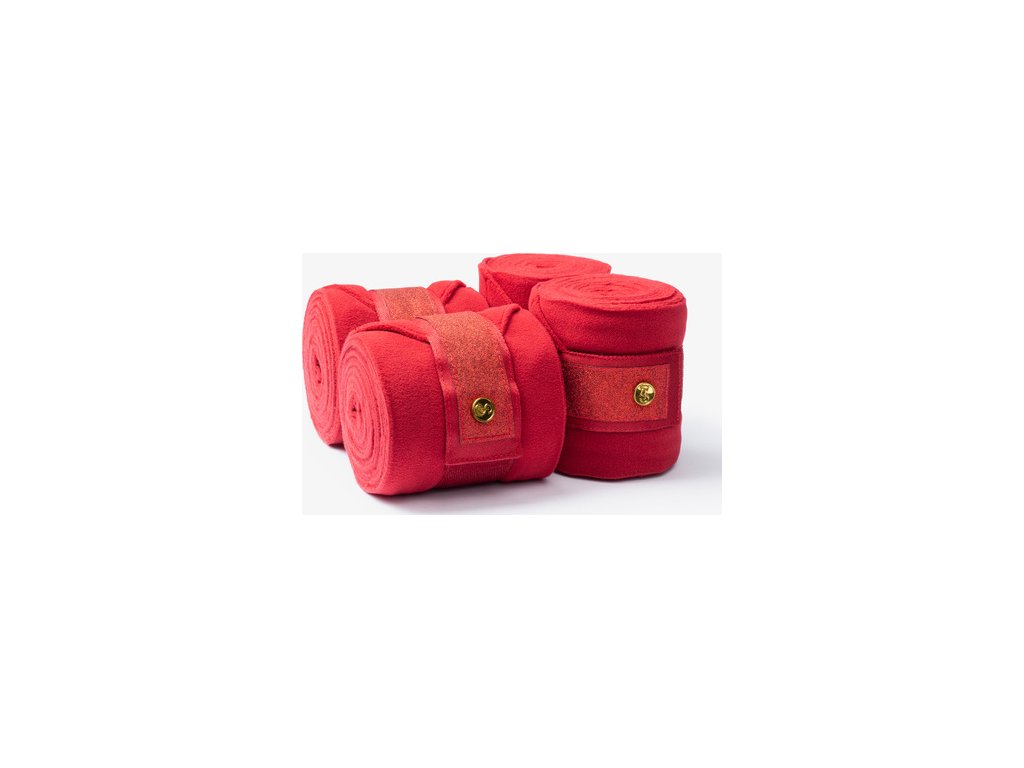 Vánoční bandáže pro koně z fleecového materiálu, který je příjemný a měkký. Zapínání je vyřešeno pomocí suchého zipu, který zajišťuje rychlou a snadnou manipulaci. Zdobeny třpytivým zakončením. Skvěle ladí k dečce stejné barvy z kolekce Stardust. Délka bandáže činí 3,5m. Balení obsahuje 4 kusy bandáží.