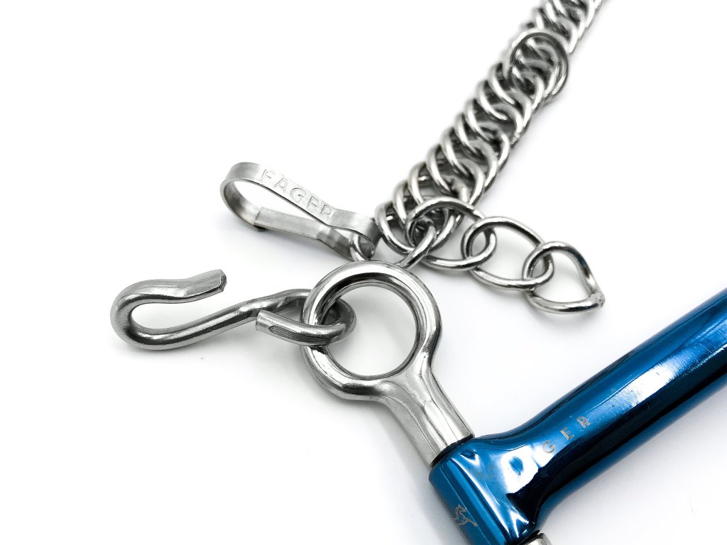 Díky těmto bezpečnostním svorkám už si nikdy nebudete muset pamatovat, na jaké místo připnout podbradní řetízek. Stačí jednou nastavit délku, přetočit svorku a připnout přímo na udidlo. Poté si můžete vybrat, jestli svorku odepínat od udidla či od řetízku. Svorka zajistí konstantní umístění řetízku bez jakéhokoliv posunu. Jedná se také o skvělou volbu, jestliže jezdíte na uzdě, stihlové udidlo se nikdy nezachytí ve svorce. Jsou vyrobeny z vysoce kvalitní nerezové oceli. K dispozici také v černé barvě.