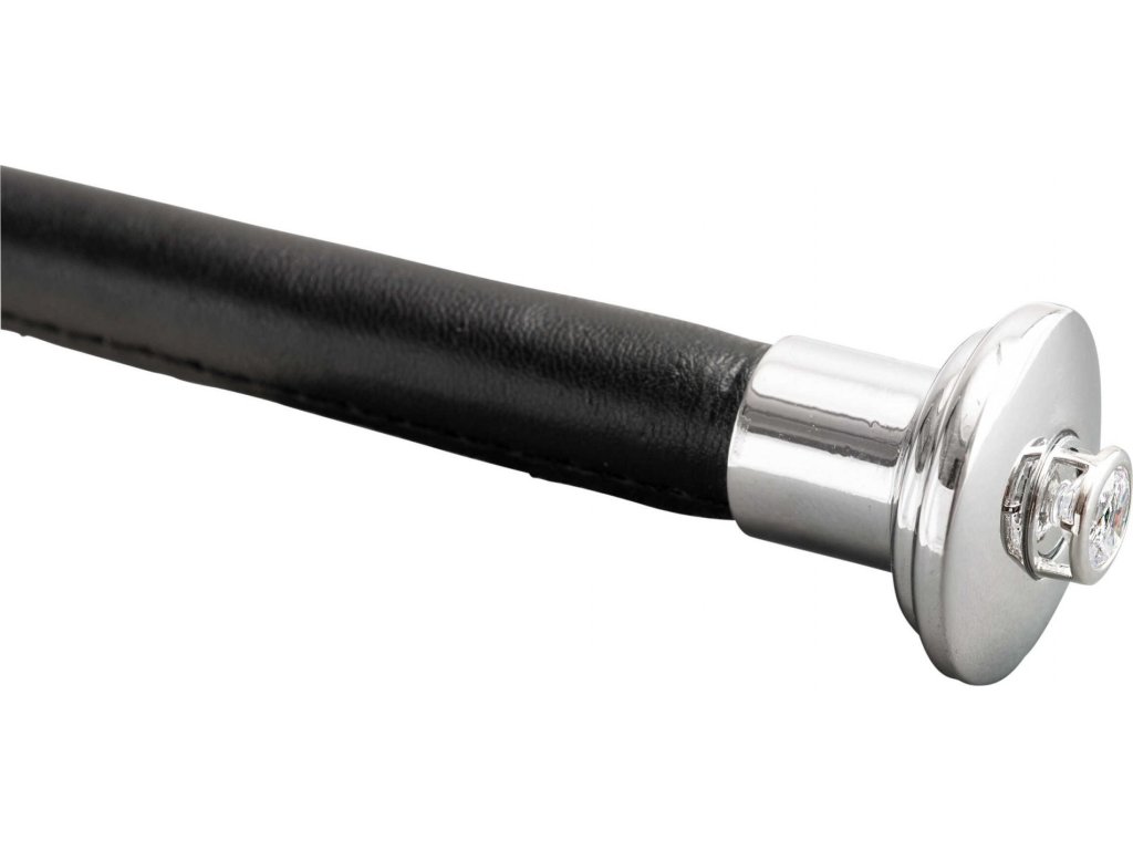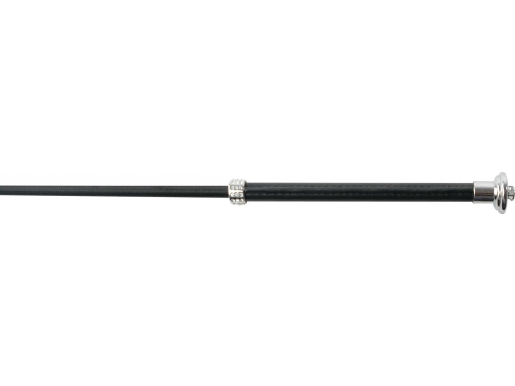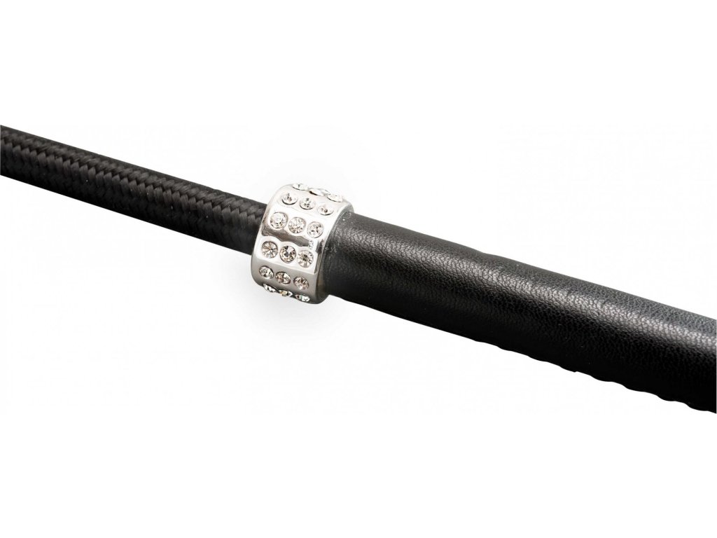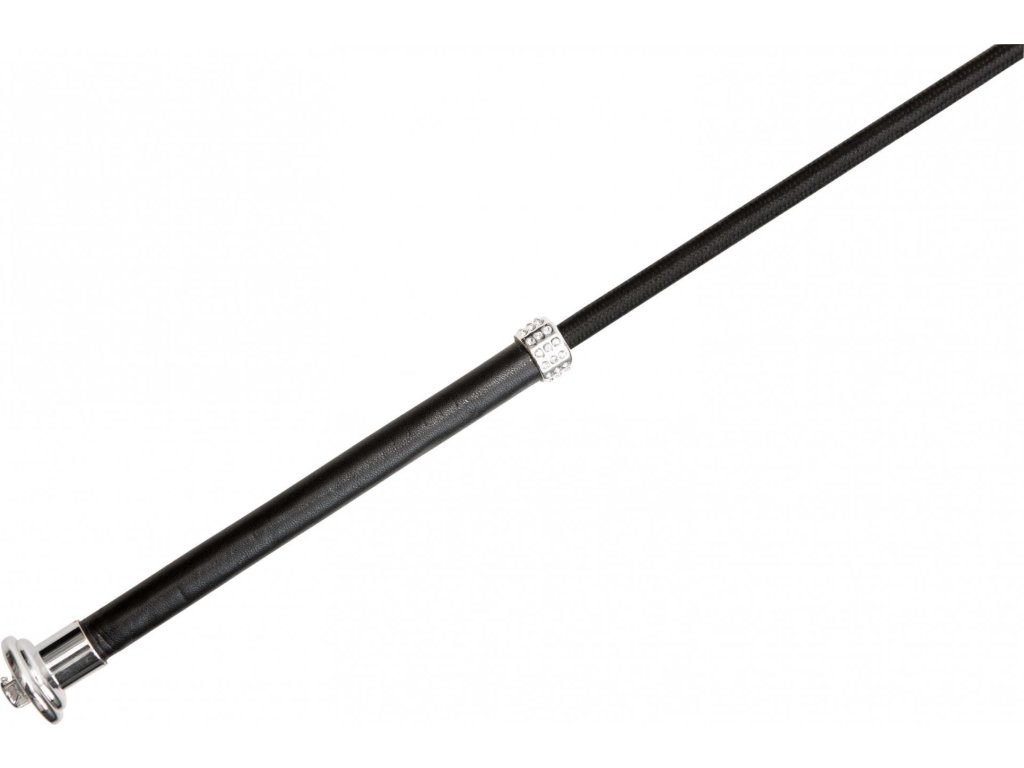 Drezurní bič se vyznačuje elegantními třpytivými detaily a zároveň je plně funkční. Lehká, ale pevná konstrukce ze skleněných vláken, která je potažená odolným nylonem, zajišťuje dlouhou životnost i ideální pružnost pro přesné a jemné vedení koně. Jeho výraznou dominantou je vintage rukojť z umělé kůže z polyuretanu, která dobře padne do ruky. Z důvodu velkých rozměrů nelze bič zaslat Zásilkovnou.
