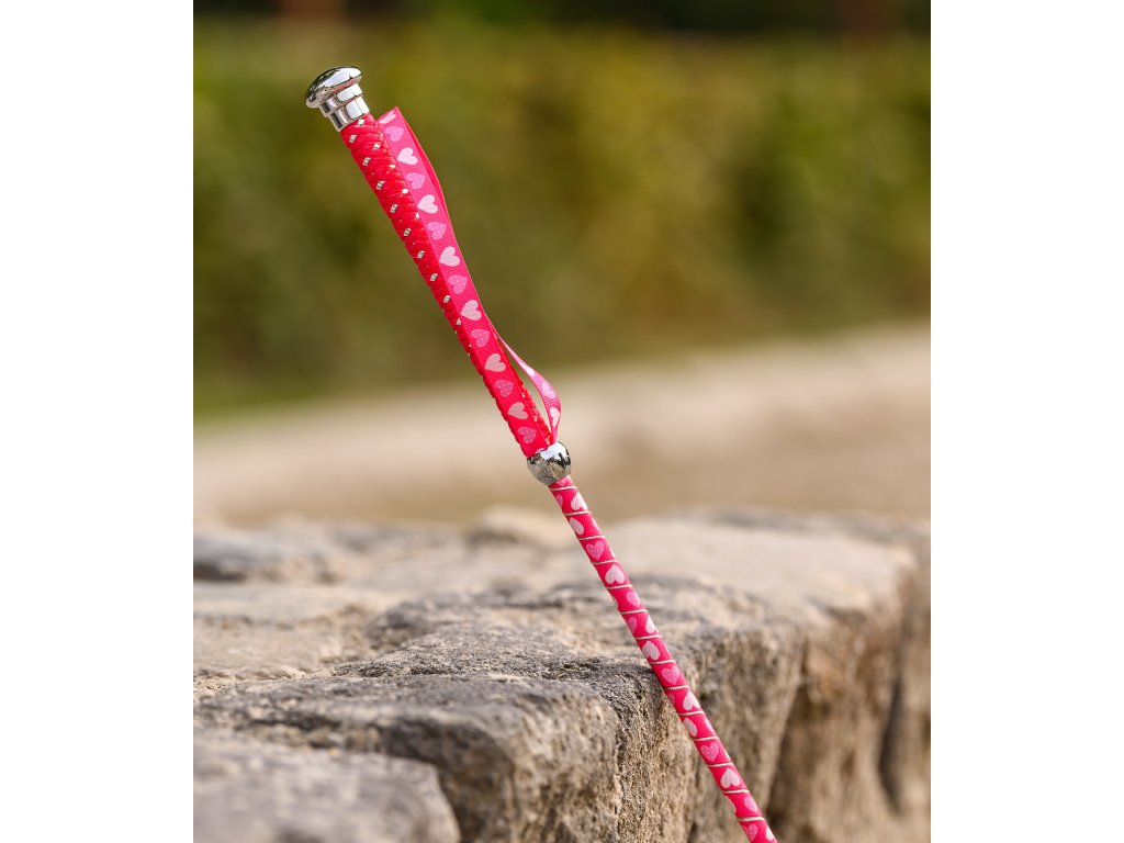 Roztomilý dětský drezurní bič s motivem srdíček, nylonovou rukojetí a praktickým nylonovým poutkem. Délka: 90 cm. Z důvodu velkých rozměrů nelze bič zaslat Zásilkovnou.