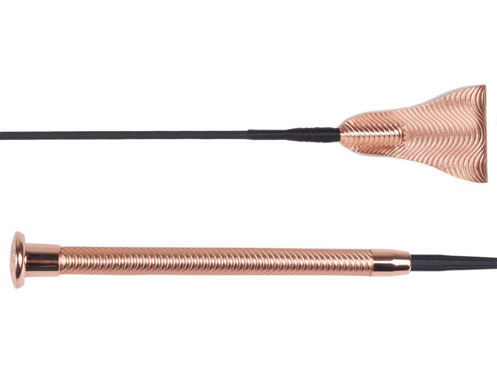 Elegantní skokový bič ozvláštněn rukojetí ve tvaru spirály. Rukojeť je vyrobena z imitace kůže. Bič je opatřen kovovým zakončením, který poskytuje pohodlné držení. Bič je dlouhý 65 cm a je dostupný ve více barvených variantách. Z důvodu velkých rozměrů nelze bič zaslat Zásilkovnou.