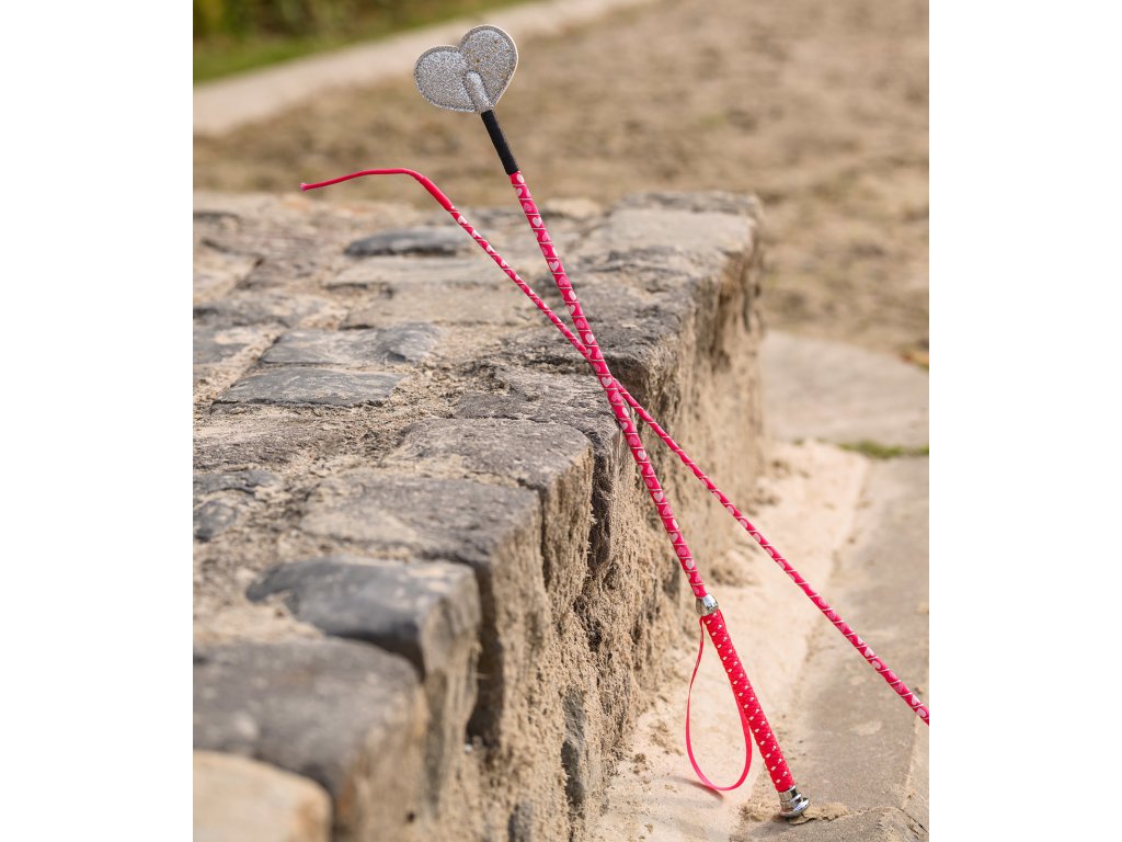 Roztomilý dětský bič se srdíčkovým motivem je vyroben z odolného nylonového materiálu a vybaven praktickým poutkem na zápěstí pro bezpečné držení. Celková délka biče je 65 cm. Vzhledem k větším rozměrům jej nelze zaslat prostřednictvím Zásilkovny.