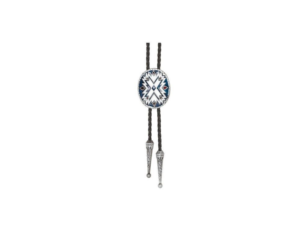 Westernové Bolo je typ kravaty s originálním motivem na společenskou událost či k dennímu nošení. Tento stylový doplněk ocení každý milovník westernu. Zadní strana je opatřena klipsem pro snadnou úpravu délky kolem krku. Šňůrka je vyrobena z kvalitního koženého materiálu s ozdobnými konci.