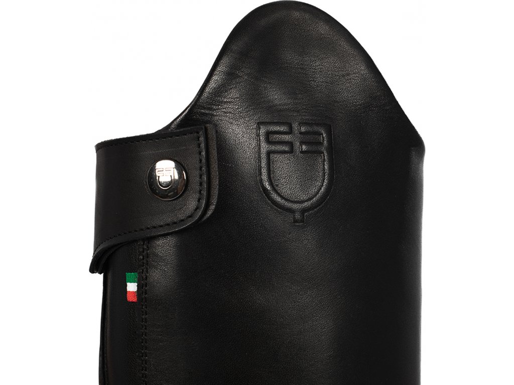 Vysoce kvalitní a odolné vysoké boty vyrobeny z měkké telecí kůže. Tento materiál poskytuje perfektní přilnutí a umožňuje skvělý kontakt mezi jezdcem a koněm. Perfektně padnou, jsou velmi pohodlné a elegantní. Poskytují maximální svobodu pohybu. Vybaveny zadním zapínáním na zip a elastickým páskem podél zapínání. Zip je krytý v horní i dolní části a lze zajistit koženým páskem s drukem. Zdobeny logem Equestro na boku. Dostupné ve více variantách podle výšky lýtka. Vyráběny ve velikostech 36 - 45 s možností výběru obvodu lýtka XS - L.