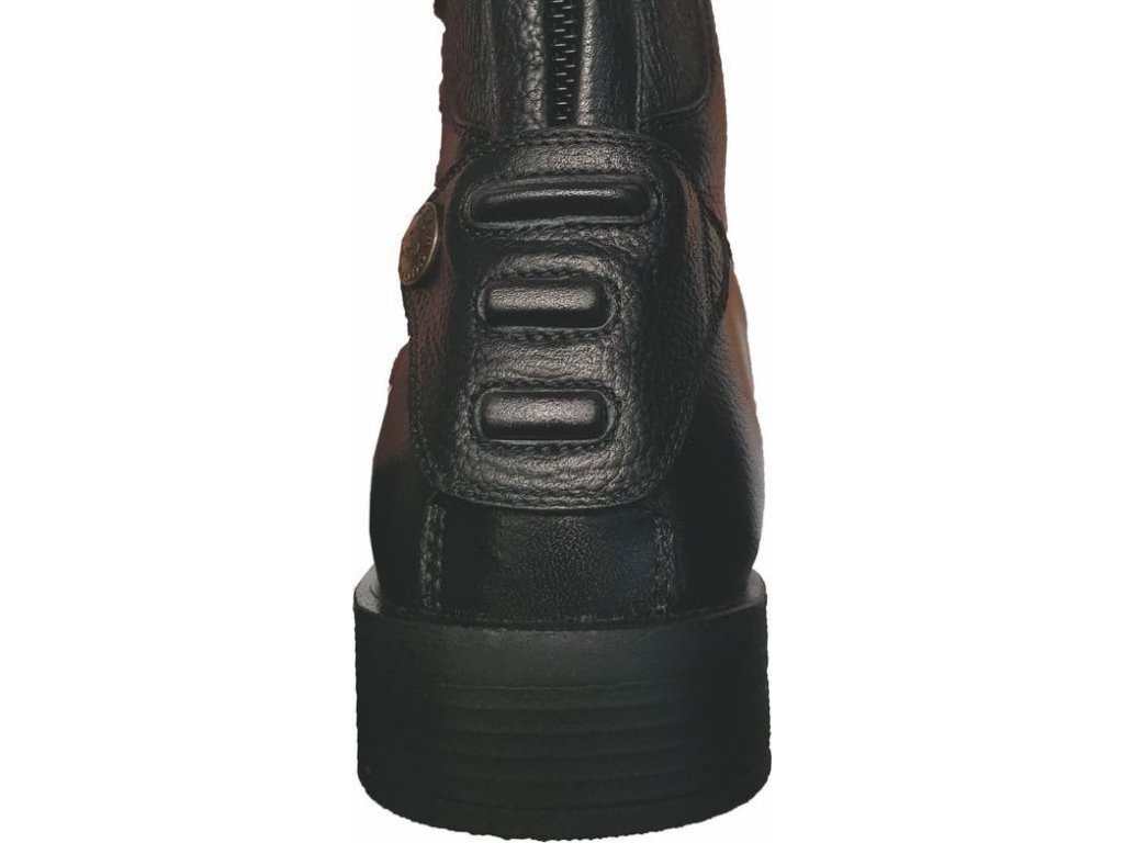 Vysoce kvalitní jezdecké boty s extra štíhlým vzhledem. Vyrobeny z hovězí kůže. Stélka z paměťové pěny a extra měkká podšívka zajišťují maximální pohodlí. Opatřeny zapínáním na zip po celé zadní straně, který je jištěn drukem nahoře i dole. Kolem zipu se nachází elastický díl, který zajišťuje dokonalé přizpůsobení. Vybaveny sešitou podrážkou, elastickým šněrováním a zarážkami na šporny, které je možno použít ve třech pozicích. Boty jsou vhodné pro vysokou holeň s šířkou M.