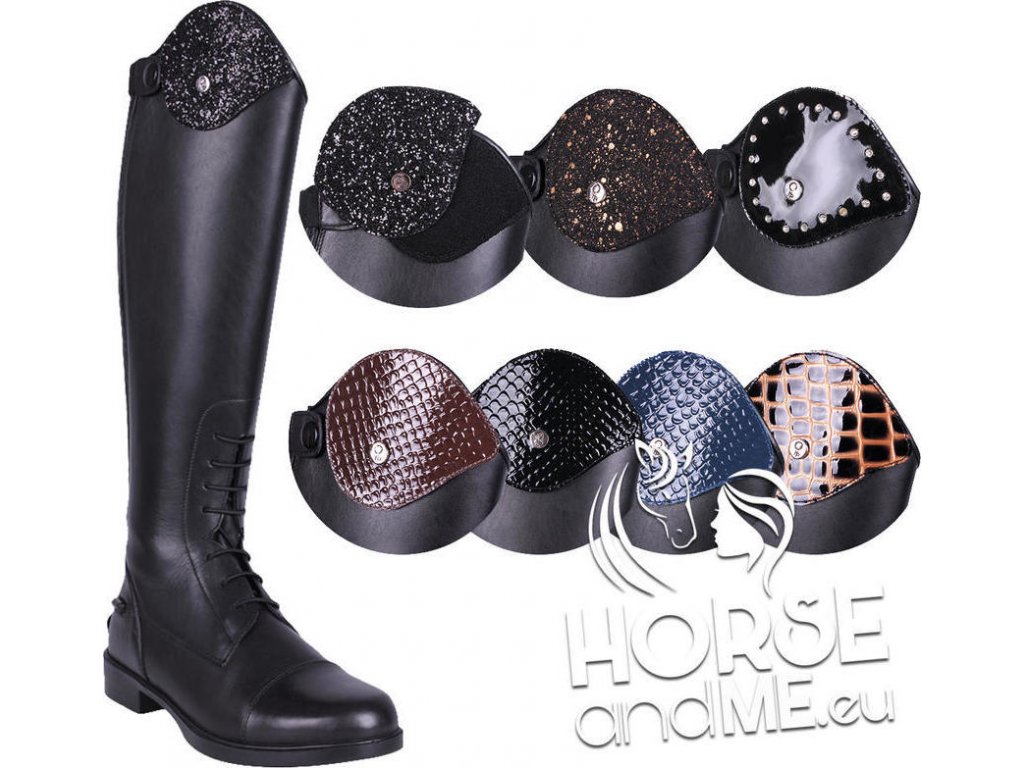 Juniorské jezdecké vysoké boty vyrobené z vysoce kvalitní hovězí kůže. Dle přání lze měnit vzhled pomocí designového dílu v horní části boty. Zapínání pomocí zadního zipu včetně jeho ochrany a zarážkami na ostruhy. Přední elegantní šněrování. V ceně je základní vyměnitelný designový díl, další je možné zakoupit samostatně. K dispozici pro vyšší, standartní a širší holeň.