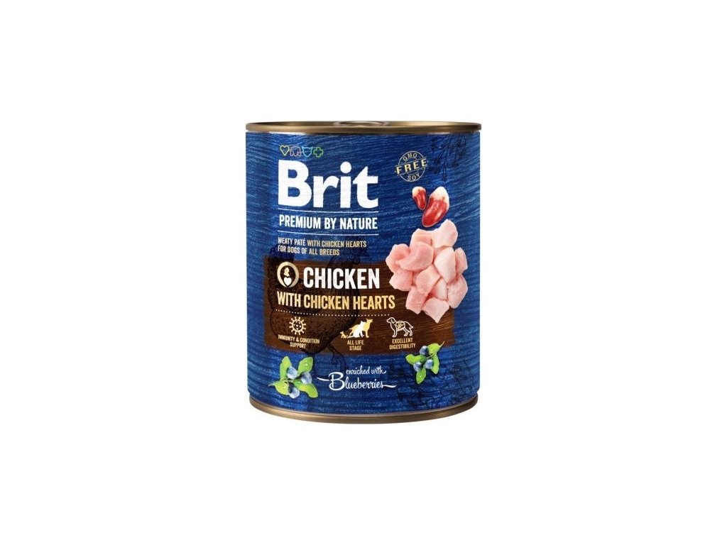 Konzerva pro psy Brit Premium by Nature, Chicken & Hearts, 800 g