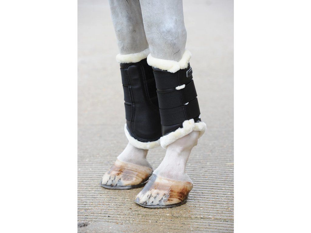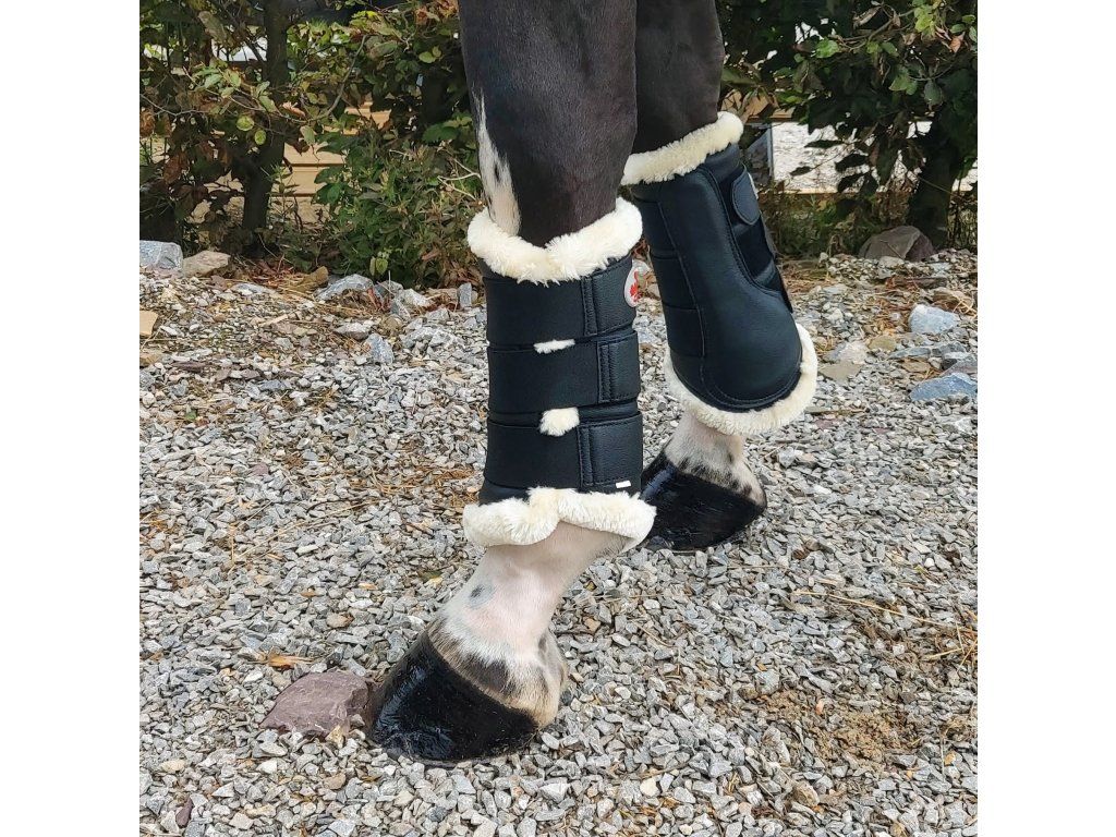 Vysoce kvalitní chrániče vhodné pro všechny typy koní pro použití na přední i zadní nohy. Vnější materiál vyroben z velmi odolné syntetické kůže. Polstrování umělým měkkým beránkem. Zapínání pomocí pevných suchých zipů. Dodávané v páru.