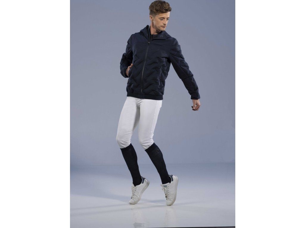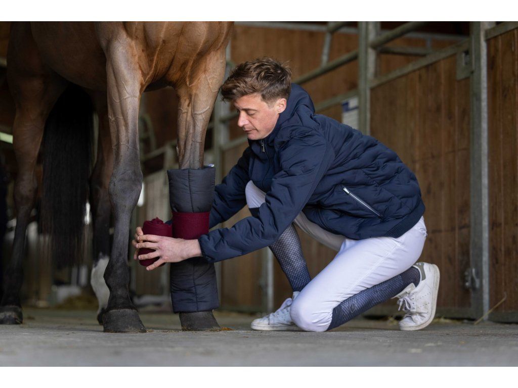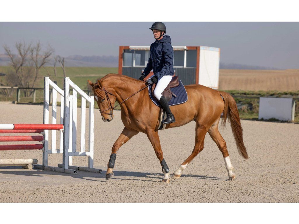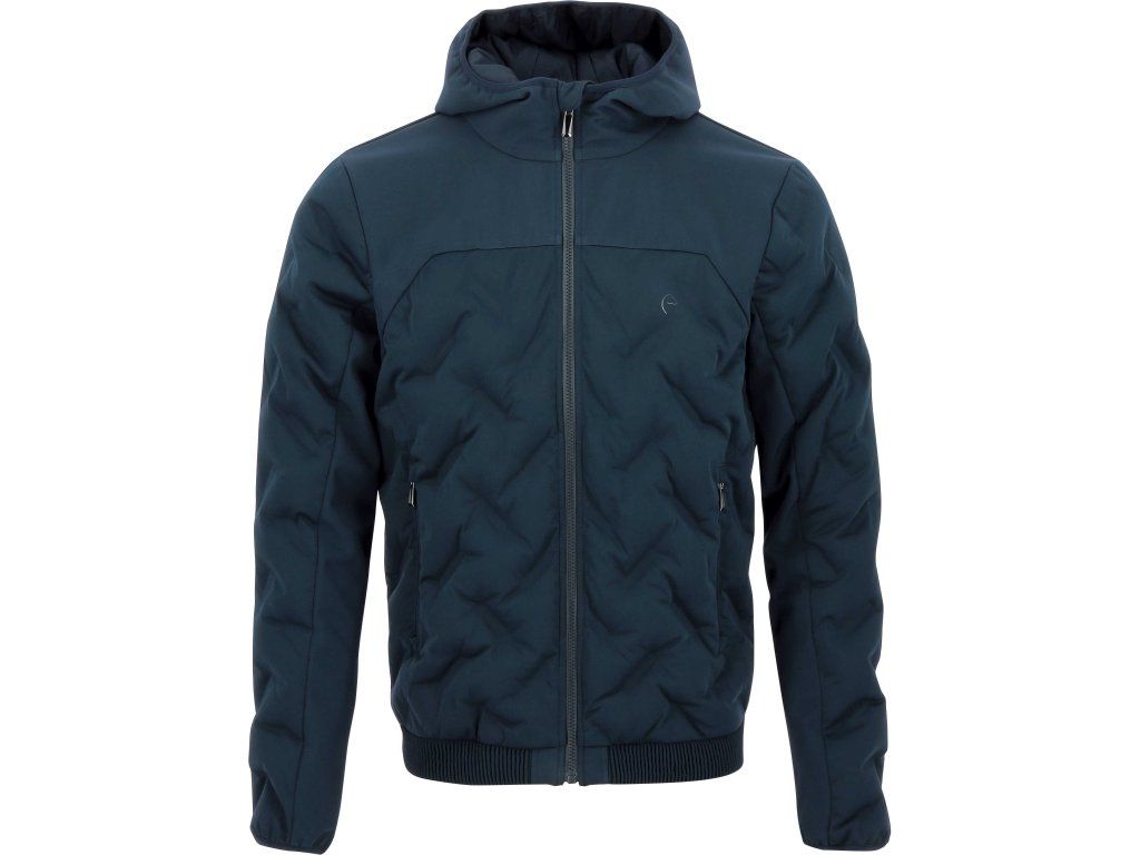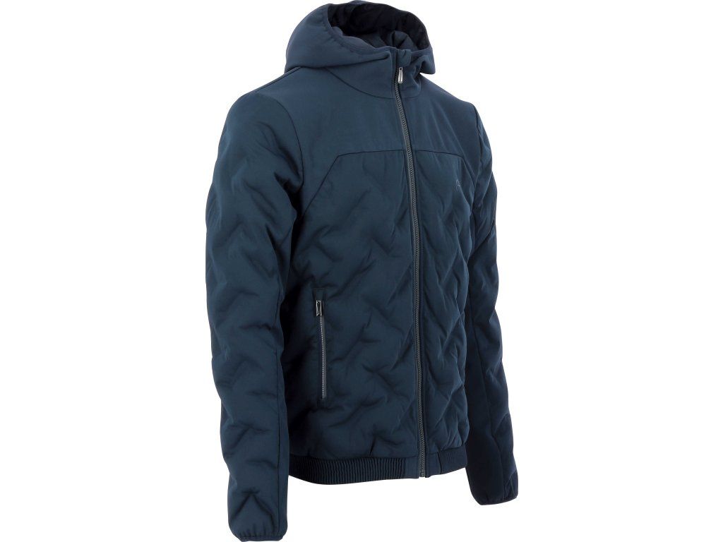 Pohodlná a technicky propracovaná pánská bunda Diagonal je určena pro jezdce, kteří mají rádi sportovní styl a moderní inovace. Díky polstrování bez švů je velmi pohodlná a zároveň výborně tepelně izoluje. Výplň tvoří lehké vláknité kuličky, které představují inovativní alternativu k prachovému peří. Toto polstrování je snadno pratelné, rychleschnoucí a prodyšné. Malé vzduchové kapsy mezi vlákny zaručují stabilní tepelný komfort i při chladném počasí. Vnější tkanina je opatřena vodoodpudivou úpravou DWR (Durable Water Repellent), která chrání před lehkým deštěm a vlhkostí. Hlavní materiál je vícenásobně elastický a zajišťuje optimální volnost pohybu při jízdě i při běžném nošení. Bunda má rovný střih, elastické zakončení spodního lemu a pružný lem na kapuce a rukávech. Kapuce je vybavena praktickým zapínáním na zádech, díky kterému při jízdě nepřekáží. Bunda má zapínání na zip po celé délce a dvě nepromokavé boční kapsy na zip pro bezpečné uložení drobností.
