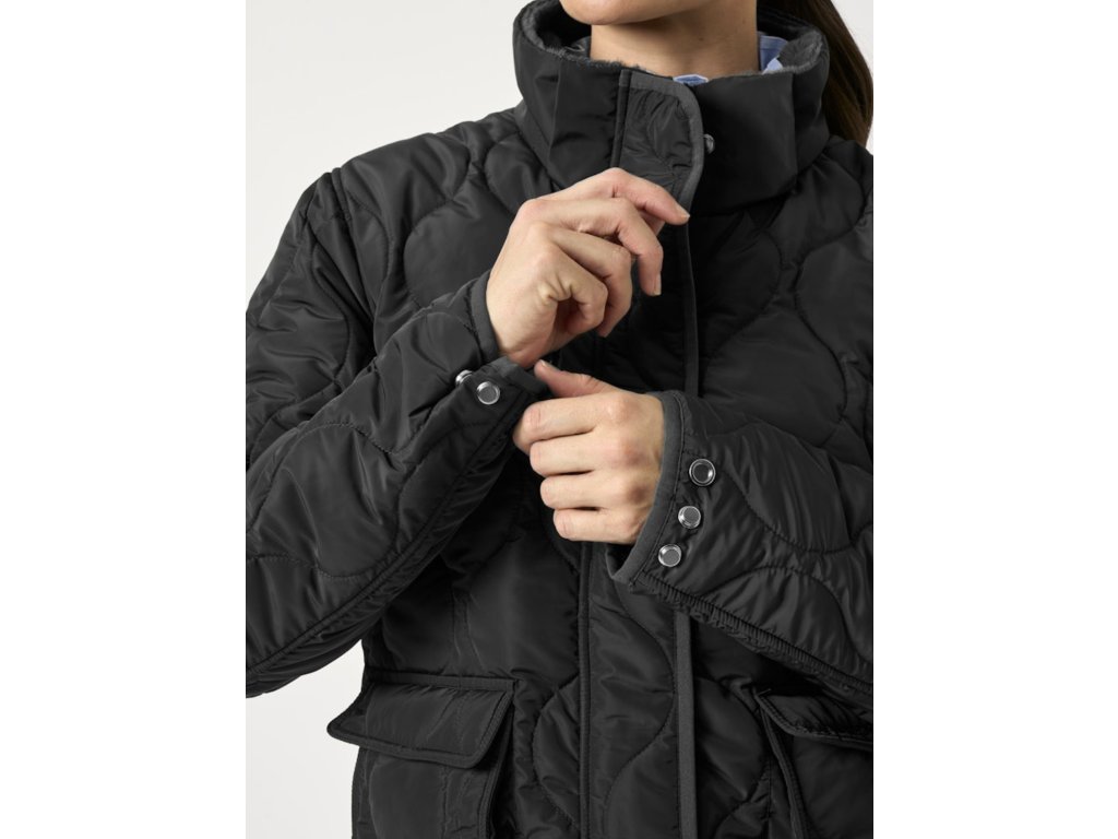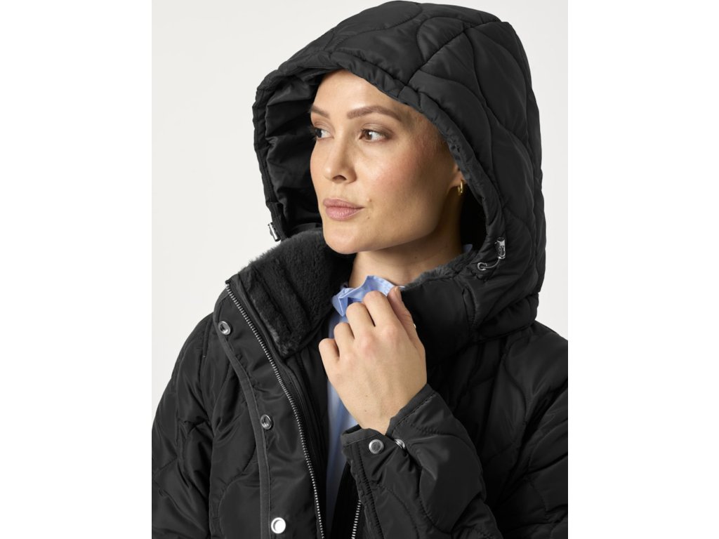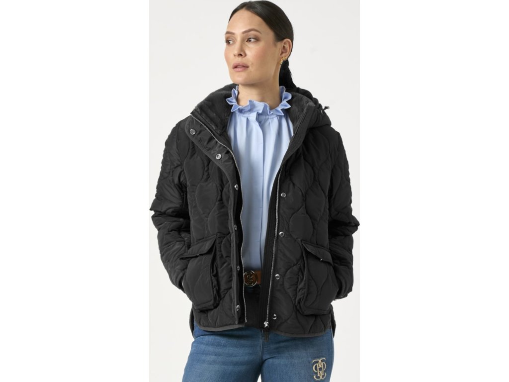 Prošívaná bunda Lara nabízí dokonalé spojení stylu, funkčnosti a pohodlí. Vyrobena z vodoodpudivé tkaniny s celoplošným prošíváním. Bunda poskytuje tepelnou izolaci a zajišťuje teplo i sucho za každého počasí. Vybavena výplní Thinsulate™ z recyklovaného polyesteru – lehká výplň, která si zachovává tvar i po praní. Bunda má přední zapínání na zip se skrytými patentkami, praktické přední kapsy s klopami a bočními kapsami, tónovanou výšivku PS of Sweden a elegantní lemování okrajů. Límec podšitý měkkou umělou kožešinou poskytuje extra komfort. Má kapuci, kterou lze stáhnout dle potřeby. Volný střih zaručuje pohodlné vrstvení během chladnějších dnů. Ideální pro jízdu na koni, cestování i běžné nošení.