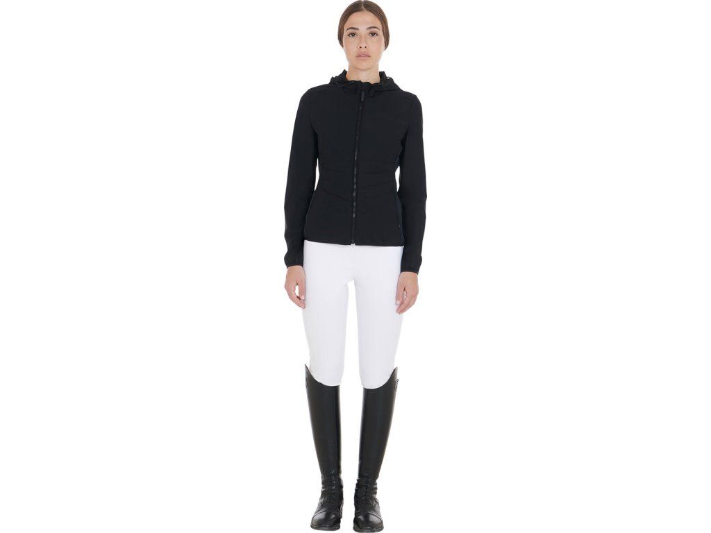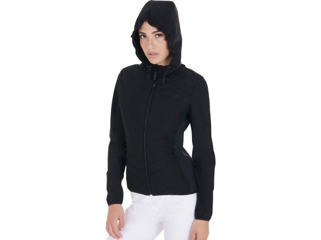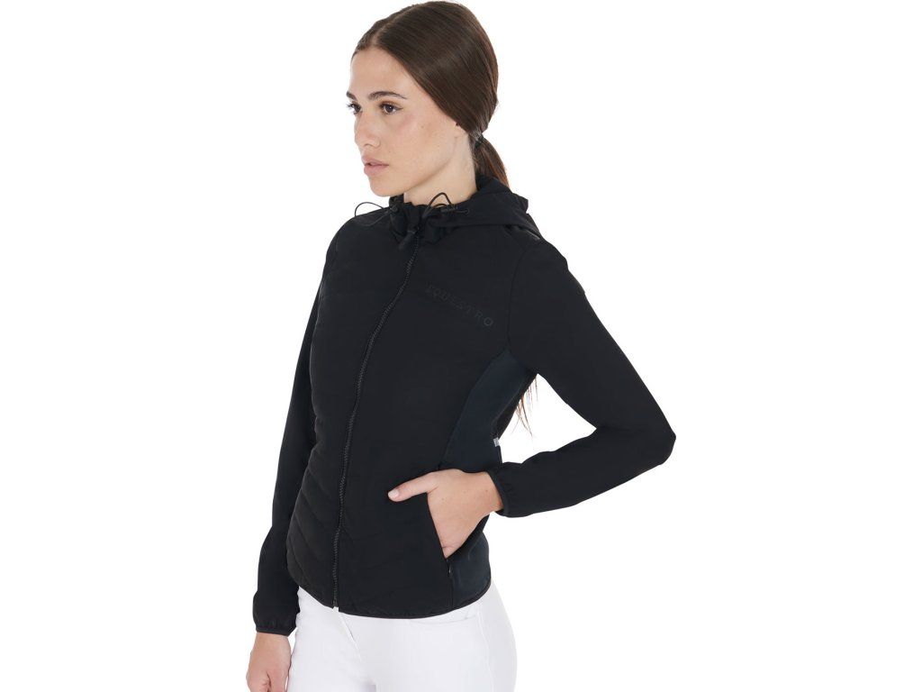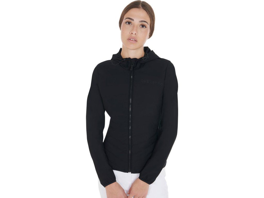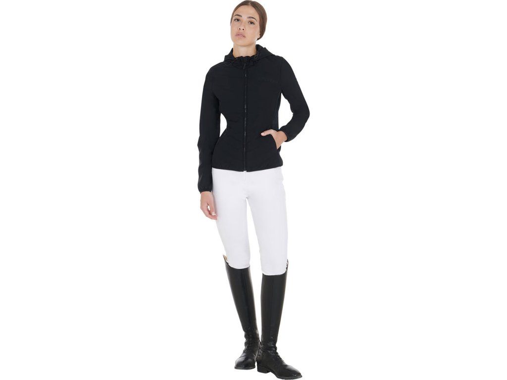 Vysoce kvalitní péřová bunda slim fit střihu vyrobená z technické směsové tkaniny. Perfektně padne, zajišťuje maximální pohodlí a plnou volnost pohybu. Je větruodolná a vodoodpudivá, chrání před mírnou vlhkostí. Vybavena kapucí se stahovací šňůrkou, praktickými bočními kapsami se skrytým zipem a předním zapínáním na zip. Ideální pro chladnější letní dny. Zdobena logem a nápisem Equestro vzadu a nápisem na levé straně hrudníku. Dostupná také v béžové barvě. Ve velikostech XS - XL.