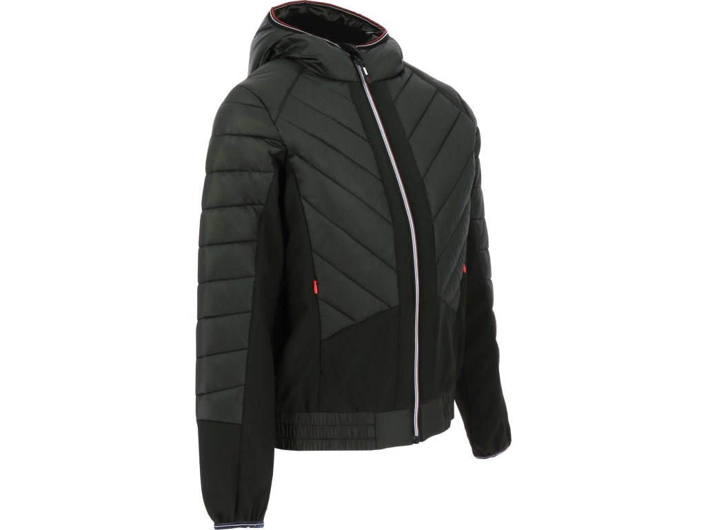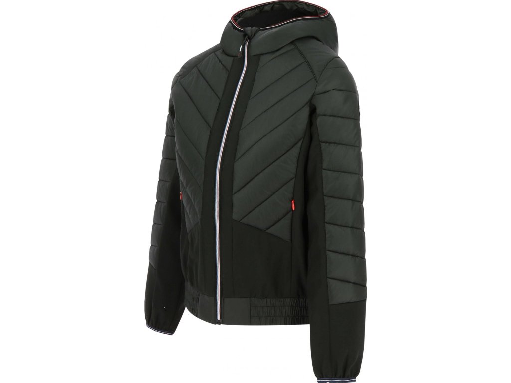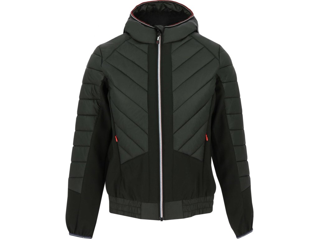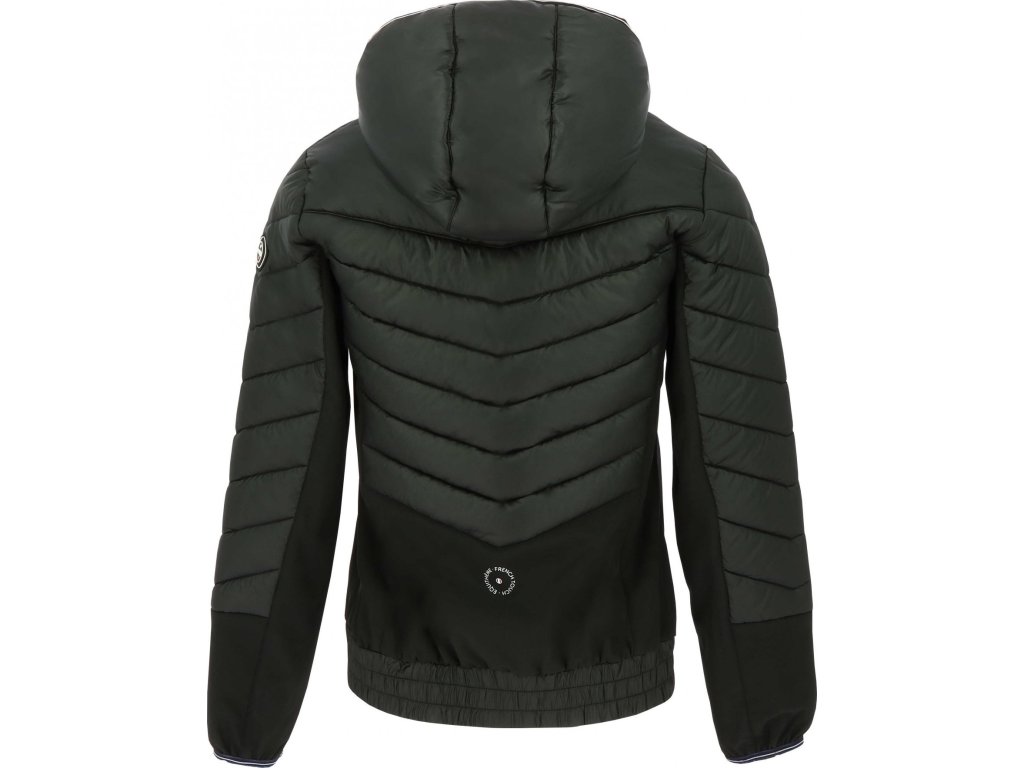 Tato hybridní bunda je ideální volbou pro všechny, kteří hledají spojení funkčnosti, pohodlí a moderního vzhledu. Díky softshellovým částem je příjemně strečová a přizpůsobivá, zatímco výplň z polyesterových vláken poskytuje potřebnou izolaci. Vnější tkanina je ošetřena vodoodpudivou úpravou DWR (Durable Water Repellent), která zajišťuje spolehlivou ochranu proti vlhkosti. Bunda má vypasovaný střih, který krásně sedí. Má přední kapsy na zip a elastické zakončení spodního lemu, kapuce a rukávů. Díky tomu perfektně drží na těle a poskytuje komfort i při aktivním pohybu.