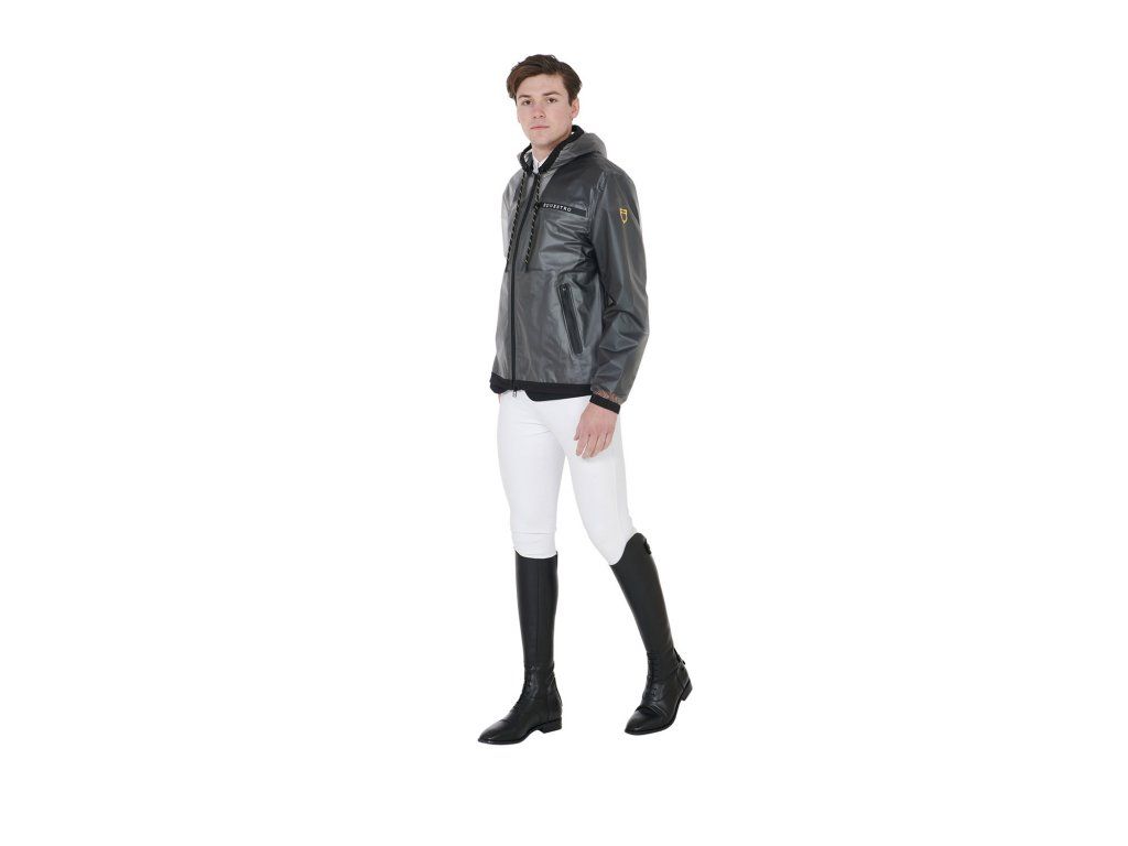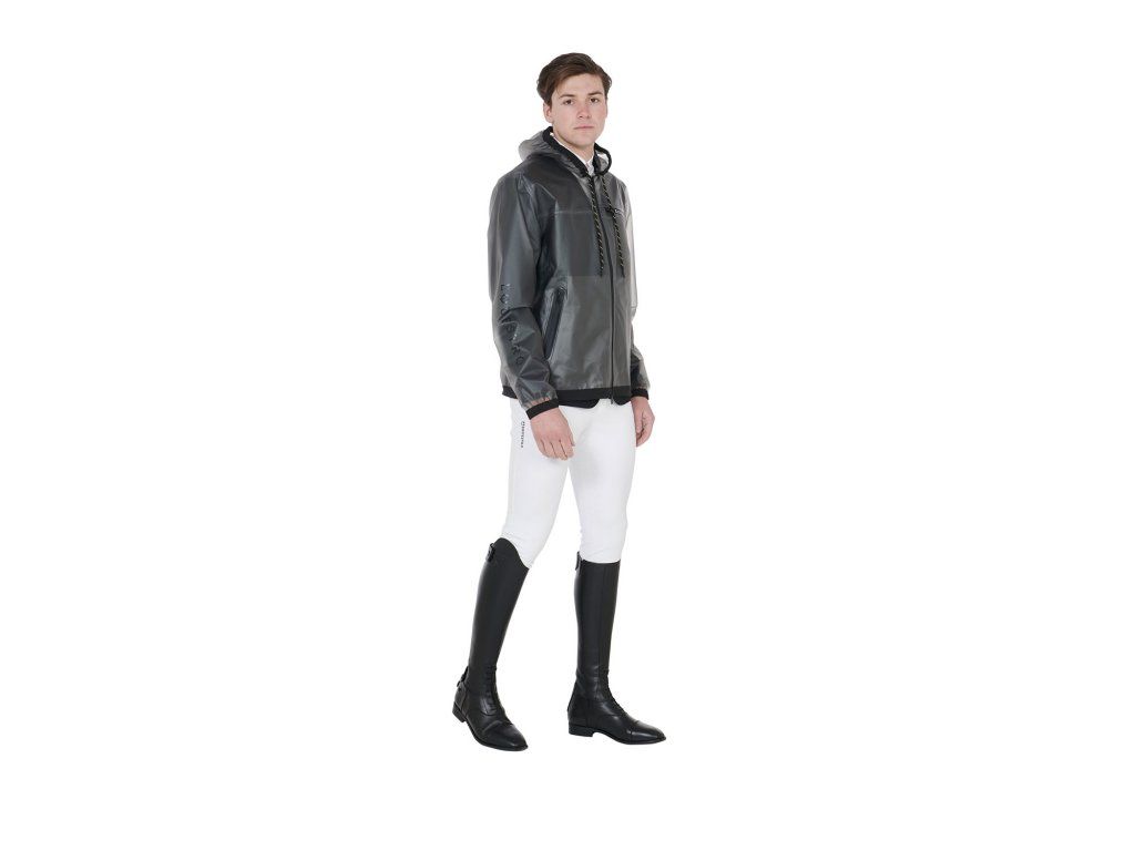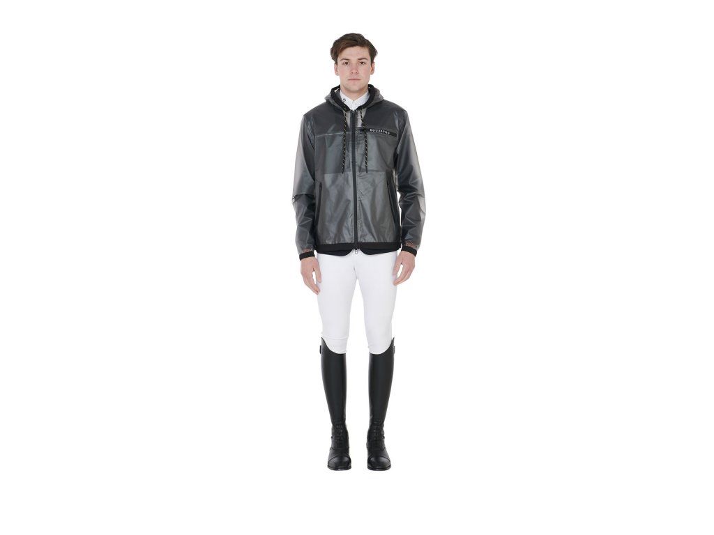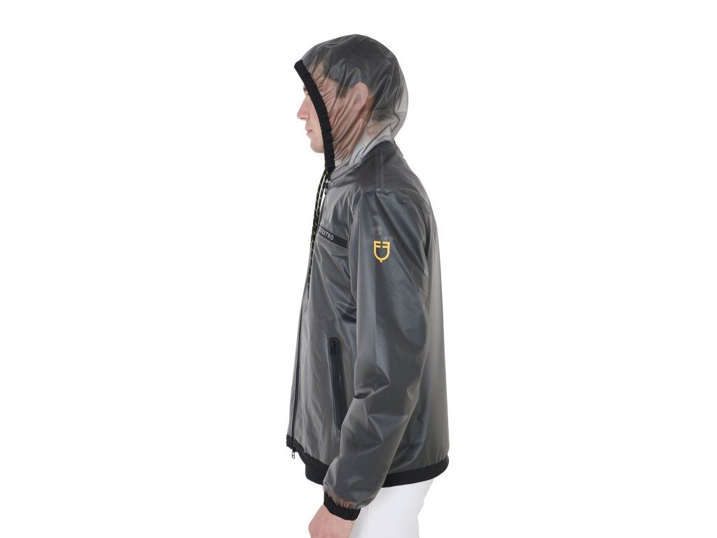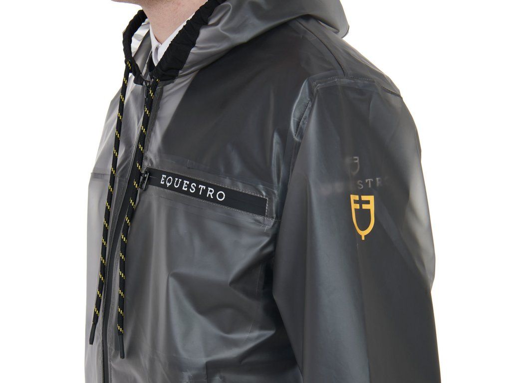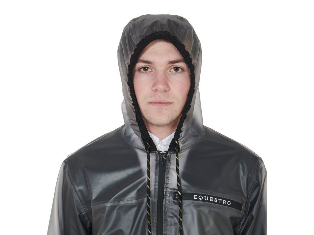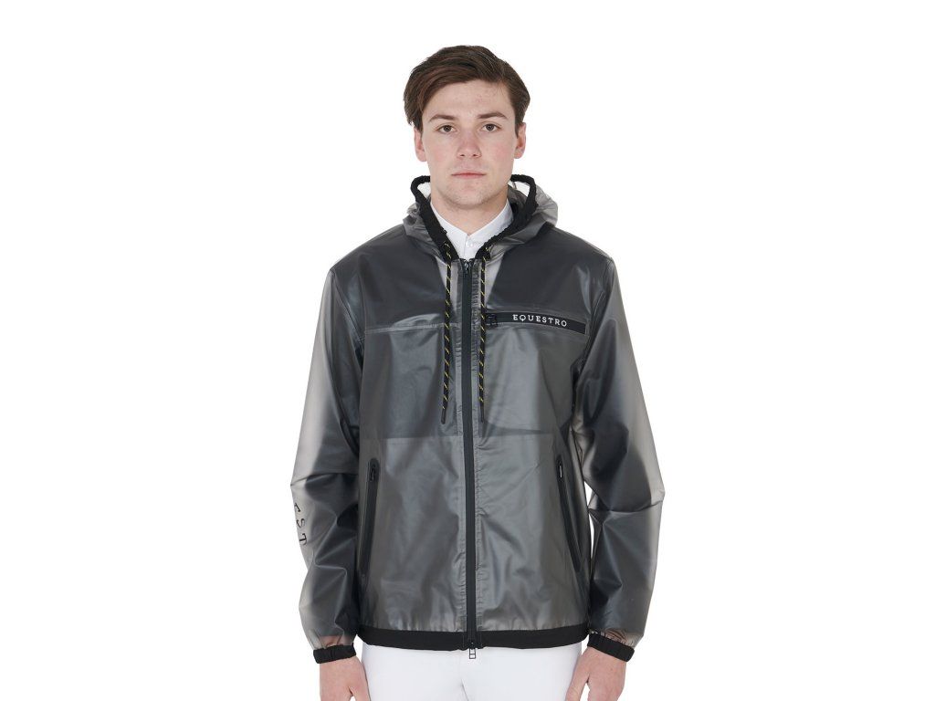 Pánská průhledná pláštěnka vyrobená z větruodolné a voděodpudivé tkaniny, která zaručuje maximální ochranu před deštěm a také vynikající volnost pohybu. Všechny švy a větruodolné zipy jsou termolaminované, což zajišťuje voděodolnost. Vybavena zapínáním na zip, kapucí a kapsami. Zdobena nápisem Equestro na levé straně hrudníku, pravé paži a logem na levém rameni. Ve velikostech XS - XXL.