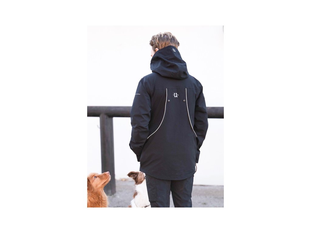 Design je vzadu mírně prodloužený, aby umožnil neomezený pohyb. Vybavena dvoucestným předním zipem, vysokým límcem pro větší teplo a odnímatelnou kapucí, kterou lze nastavit vpředu i vzadu pro optimální přizpůsobení. Manžety na rukávech lze přetáhnout přes ruce, aby chránily před deštěm a chladem. Vnitřní rukávy mají otvory na palce. Vše, co pejskač potřebuje pro výcvik v jakémkoliv počasí.