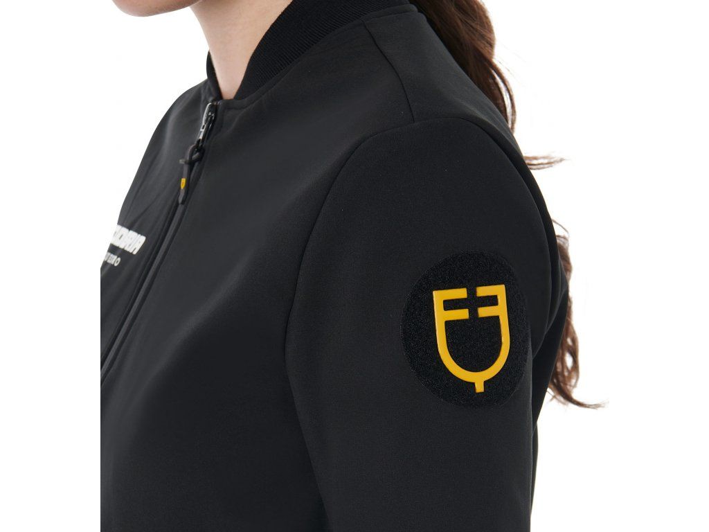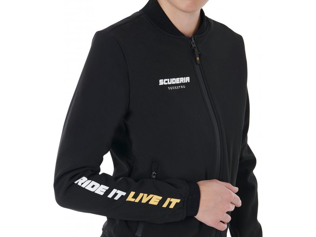 Vysoce kvalitní dámská bunda vyrobena z prodyšné technické tkaniny. Kombinuje klasickou funkčnost, high-tech detaily a perfektní střih. Je větruodolná a chrání před chladem díky vnitřní podšívce. Vybavena odnímatelnou kapucí, která umožňuje rychle přizpůsobit bundu měnícím se povětrnostním podmínkám. Zapínání na zip je vylepšeno páskou, která zabraňuje pronikání větru a vody. Ergonomické silikonové zakončení na zipu umožňuje plynulé rozepínání a zapínání i v rukavicích. Vybavena náprsní kapsou a bočními kapsami s lepenými zipy. Díky elastickému pasu a manžetám bunda perfektně padne. Zdobena logem a nápisem Equestro a nápisem Scuderia. Pravý rukáv zdobí nápis "Ride it Live it". Dostupná také v pánském modelu. K dispozici ve velikostech XS - XL.