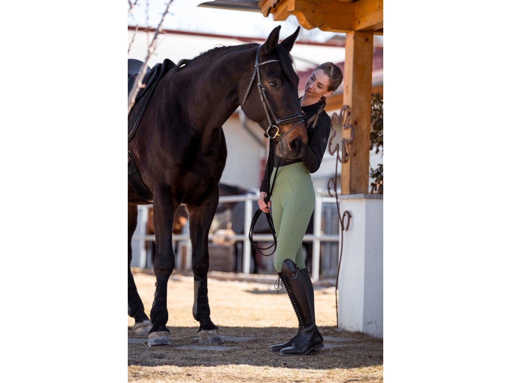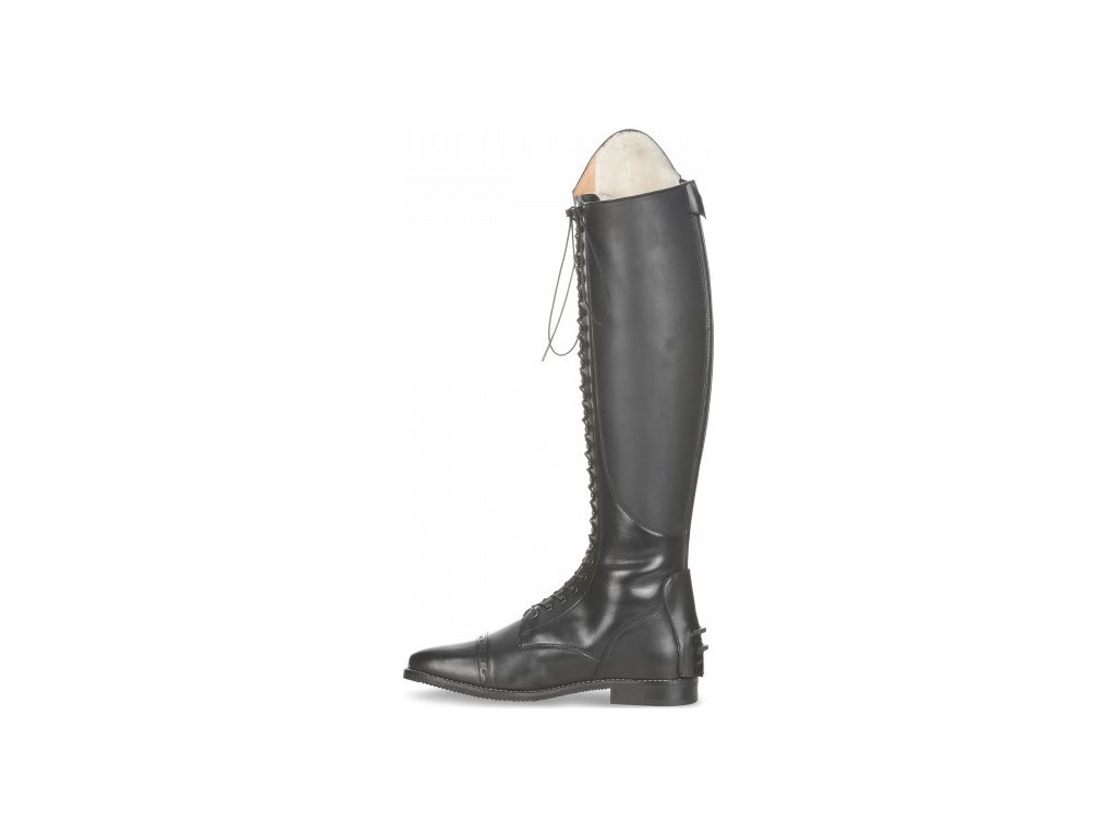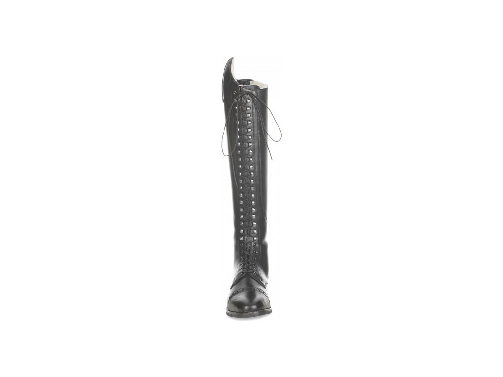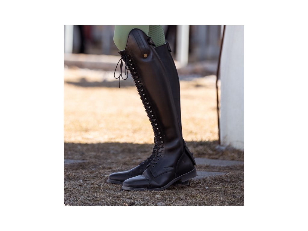 Vysoké jezdecké boty vyrobené z kvalitní evropské hovězí kůže s elegantním šněrováním vhodné do zimních chladných dnů. Boty jsou kompletně podšité prodyšnou 100% vlnou. Praktické šněrování poskytuje snadné přizpůsobení požadovaného tvaru lýtka. Díky jazyku, který je připevněný suchým zipem, zůstane šněrování při vyzouvání i nazouvání na místě. Zapínání pomocí podšitého YKK® zipu po celé zadní délce s elastickou vložkou pro snadné nazouvání (elastická vložka s rozptylem až 1 cm). Pomocí koženého pásku a druku lze zip snadno zajistit. Boty jsou dále vybaveny koženou klopou s drukem ve spodní části a s přídavnými zarážkami pro ostruhy. Vnitřní strana je vyrobena z protiskluzové kůže pro perfektní přilnutí. Boty mají gumovou protiskluzovou podrážku a zesílenou patu. Ručně vyrobená pryžová podešev s odnímatelnou, tvarovanou stélkou absorbující nárazy pro pohodlné celodenní nošení. Jezdecké zateplené boty Laval Busse jsou k dispozici v hnědé a černé barvě. K botám lze zakoupit tkaničky v několika barvách. Dále jsou boty k dispozici v různých kombinacích šířky a délky.