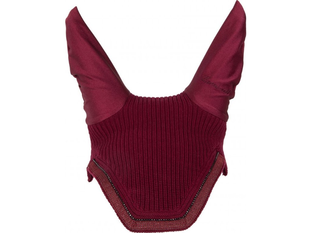 Elegantní háčkovaná čabraka z bavlněného materiálu. Uši jsou vyrobeny z pružného materiálu lycra, který je velmi pohodlný, chrání uši před hmyzem a podporuje soustřední koně při práci. Čabraku zdobí třpytivý kamínkový detail a vyšívané logo značky Lami-Cell.
