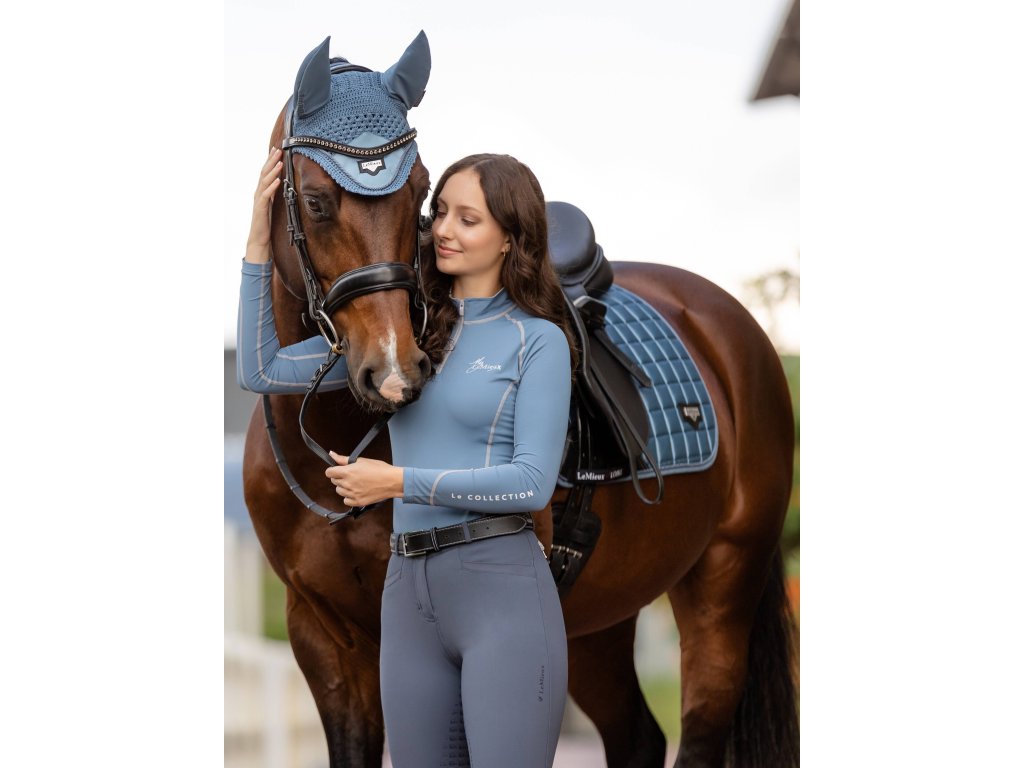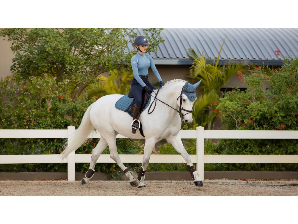 Luxusní čabraka proti hmyzu kombinuje špičkovou ochranu s vytříbeným stylem. Přední část čabraky je vyrobena z ručně háčkované 100% bavlny se čtyřsměrnou pružností, která zajišťuje pevné a stabilní usazení pod uzdečkou. Zdobena je decentní paspulkou. Elegantní saténový detail na přední části dodává čabrace exkluzivní vzhled a je doplněn ikonickým logem LeMieux v podobě kovového emblému na koženém podkladu. Uši jsou vyrobeny z měkkého, elastického materiálu, který poskytuje vysoký komfort a účinně chrání koňské uši před hmyzem, prachem i rušivými vlivy během práce. Elegantní a funkční volba pro jezdce, kteří chtějí svému koni dopřát maximální komfort a zároveň prémiový vzhled.
