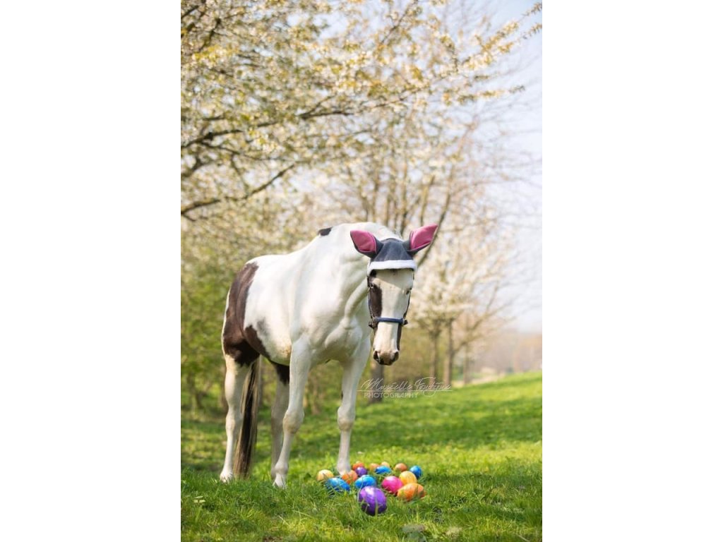 Tématická čabraka je stylovým doplňkem pro jarní období, tematické akce nebo focení. Je vyrobena z měkkého fleecu a doplněna bílým lemem z hebkého plyšového fleecu. Zaječí uši jsou podšité neoprenem, díky kterému dobře drží tvar. Lze prát v pračce na 30 °C. Prát v pracím sáčku. Nepoužívat aviváž. Nesušit v sušičce.
