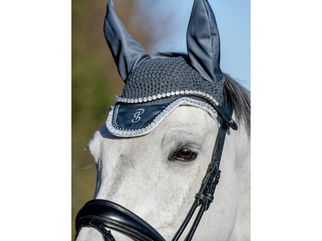 Ručně háčkovaná čabraka s antibakteriálním prvkem. Část určená pro uši je vyrobena z elastického materiálu, aby bylo koni zajištěno maximální pohodlí. Čabraka je zdobena kamínky a nabíranou stuhou podél okraje, ladí tedy skvěle k celé kolekci Ruffle.