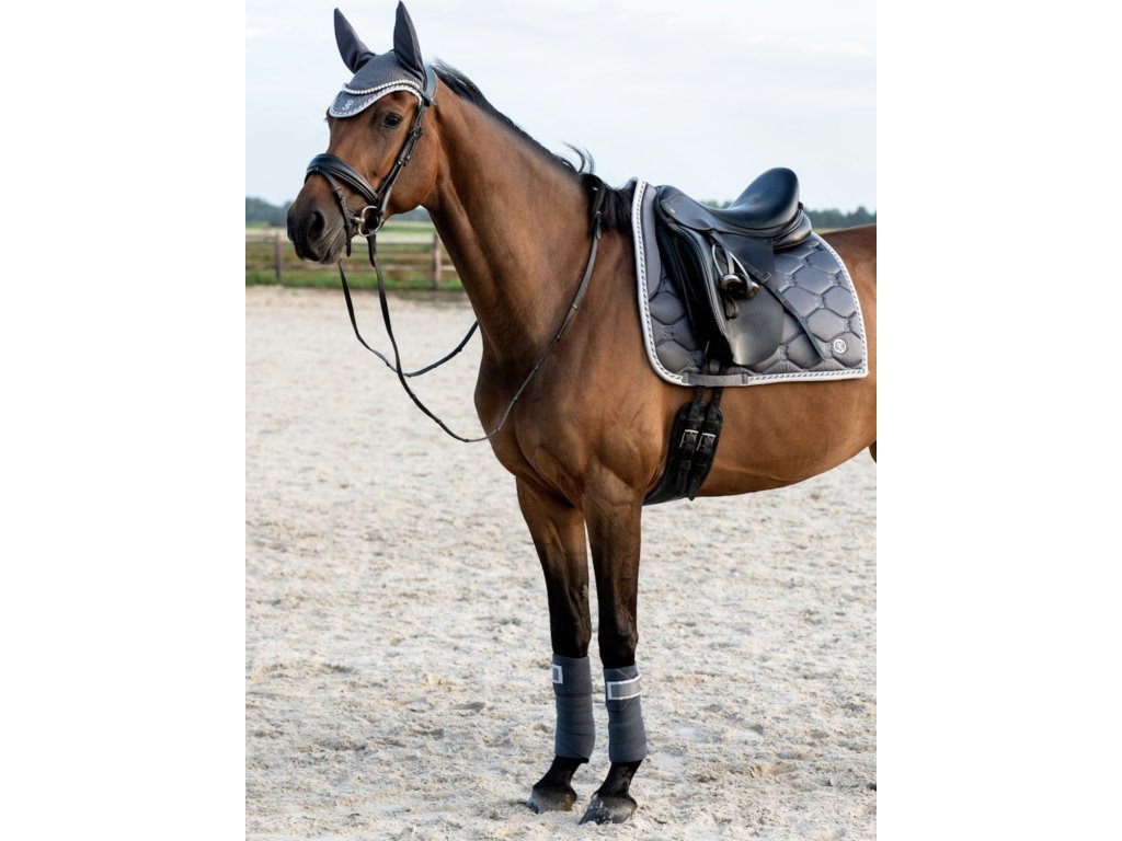 Ručně háčkovaná čabraka s antibakteriálním prvkem. Část určená pro uši je vyrobena z elastického materiálu, aby bylo koni zajištěno největší pohodlí. Čabraka je zdobena decentním logem PS. Skvěle ladí k celé kolekci Signature od značky PS of Sweden.