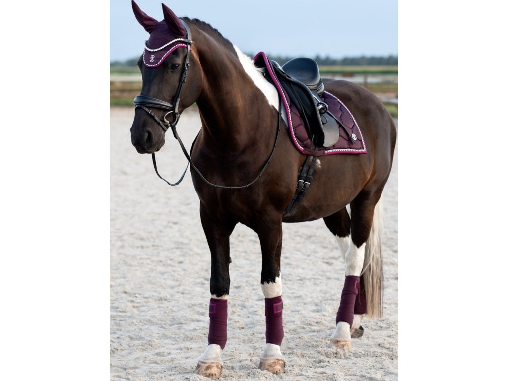 Ručně háčkovaná čabraka s antibakteriálním prvkem. Část určená pro uši je vyrobena z elastického materiálu, aby bylo koni zajištěno největší pohodlí. Čabraka je zdobena decentním logem PS. Skvěle ladí k celé kolekci Signature od značky PS of Sweden.