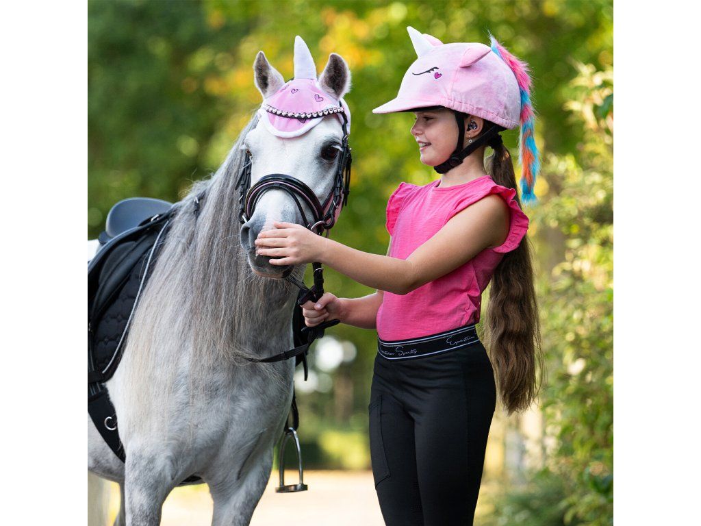 Roztomilá čabraka s rohem jednorožce, srdíčkovým zdobením a bílým lemováním. Díky otvorům pro uši se snadno nasazuje a zajišťuje pohodlné nošení. Perfektní doplněk pro malé i velké milovníky jednorožců.