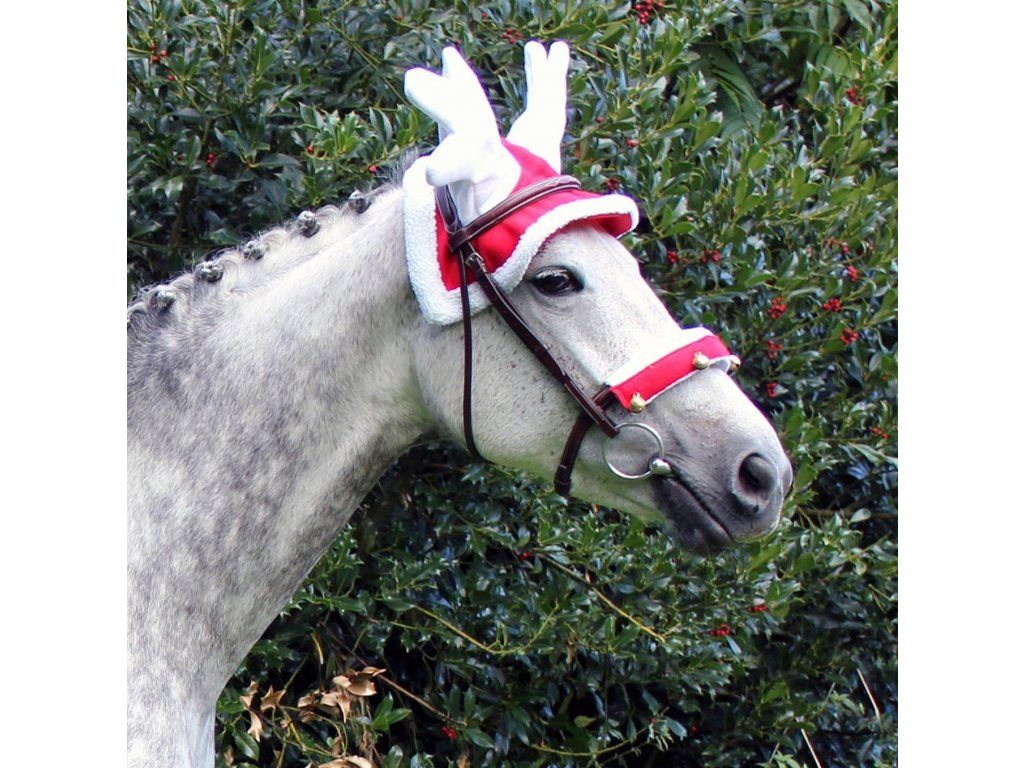 Vánoční čabraka pro koně s bílými parohy a podšívkou. Skvěle sedí k ostatním vánočním výrobkům.