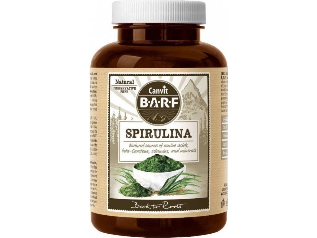 Spirulina je přirozeným přírodním zdrojem bílkovin (60-70%). Jedná se o komplexní protein obsahující veškeré nepostradatelné aminokyseliny. Dále obsahuje vitamíny skupiny B, D, E a K, minerální látky a železo. Je skvělým zdrojem koncentrovaných a lehce vstřebatelných živin, proto se řadí mezi tzv. superfoods. Má pozitivní vliv na vitalitu, celkové fungování organismu a jeho obranyschopnost. Je vhodným doplňkem pro BARF zejména pro psy v zátěži či v období stresu.