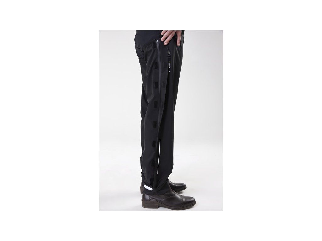 Chapsy H20 spolehlivě ochrání rajtky před deštěm i nečistotami, ať už při závodech nebo při tréninku. Jsou vyrobené ze strečové tkaniny, která se pohodlně přizpůsobí každému pohybu. Díky podlepeným švům a membráně TPU nabízejí vysokou nepromokavost (vodní sloupec 20 000 mm) a zároveň prodyšnost (5 000 g/m²/24 h). Reflexní detaily zajišťují lepší viditelnost i za horších světelných podmínek. Praktické detaily zahrnují dvoucestný zip po celé boční straně pro snadné oblékání a svlékání, nastavitelnou přezku vpředu, pásky kolem kotníků a elastický pas na suchý zip pro individuální přizpůsobení. Díky unisex střihu jsou vhodné pro každého jezdce.