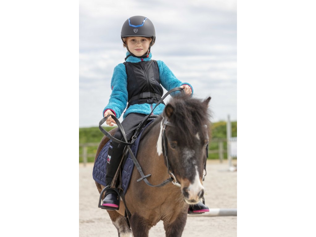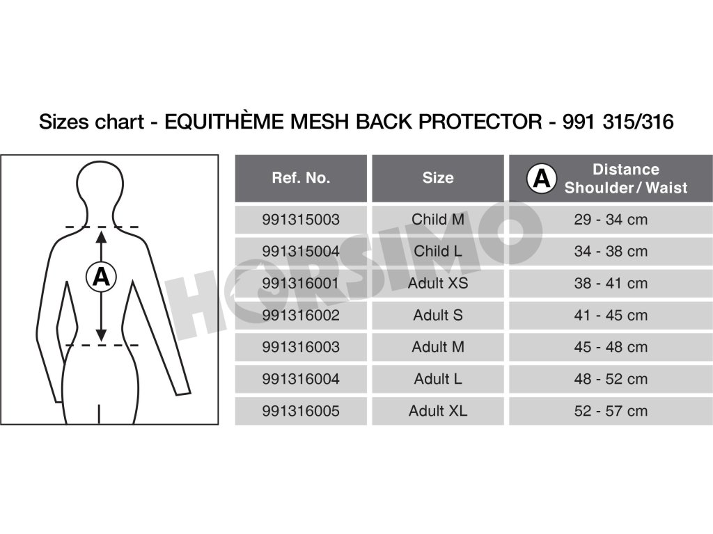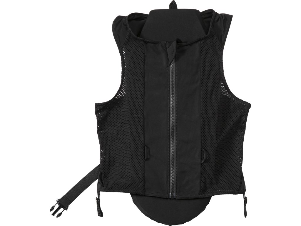 Chránič páteře Mesh je lehký a flexibilní ochranný prvek navržený pro účinné tlumení nárazů a zvýšení bezpečnosti při jízdě. Konstrukce ve formě vesty se zapínáním na zip zajišťuje snadné oblékání a dobré usazení na těle. Elastický nastavitelný pás umožňuje individuální přizpůsobení dle postavy. Vnější materiál je tvořen kombinací polyamidu a polyesteru, která je odolná, prodyšná a příjemná na nošení. Vnitřní výplň se skládá z několika vrstev lehké a poddajné vysokohustotní pěny, která účinně absorbuje nárazy, aniž by omezovala přirozený pohyb jezdce. Chránič je vybaven odnímatelným potahem z polyesteru, který lze ručně prát, což usnadňuje údržbu a zajišťuje jednoduchou hygienu při pravidelném používání. Splňuje bezpečnostní normu BS EN 1621-2:2014 Level 2, určenou pro chrániče páteře v motocyklovém sportu, což potvrzuje jeho vysokou úroveň ochrany proti mechanickým nárazům. Přestože je primárně certifikován pro motocyklistiku, může být využíván i při jízdě na koni nebo zimních sportech. Je však důležité upozornit, že tento chránič nenahrazuje plnohodnotnou jezdeckou bezpečnostní vestu certifikovanou dle normy EN 13158:2018, která je určena speciálně pro jezdecký sport.