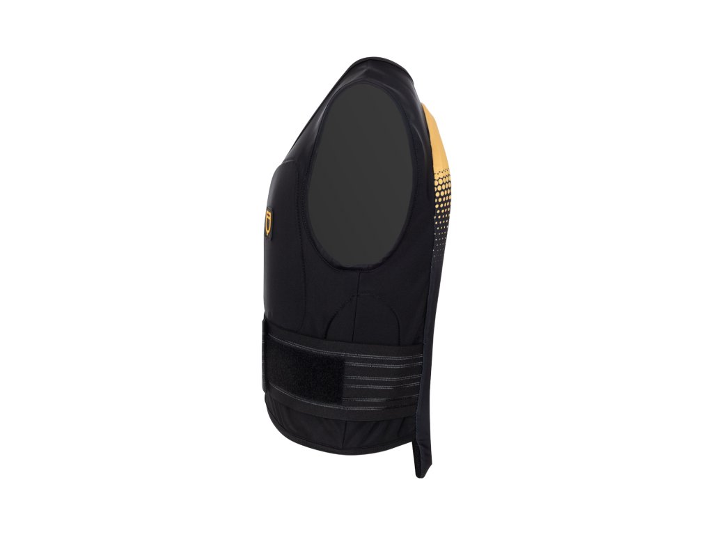 Velmi kvalitní chránič páteře ze speciální 3D tkaniny S.R.T. (Sweat Removing Textile), která je vysoce prodyšná a skvěle odvádí pot. Vnitřní polstrování vyrobeno z E.V.C. (Evoluted Viscoelastic Cells), voděodolné protinárazové pryže. Chránič je extrémně lehký, flexibilní a prodyšný. Vybaven čtyřmi speciálními vycpávkami (dvě vpředu a dvě po stranách), které perfektně tlumí nárazy a poskytují tak další ochranu. Snadno se obléká a sundává díky praktickému přednímu zipu. Opatřen elastickým bederním pásem zajišťujícím stabilitu. Zdoben logem Equestro na přední a zadní straně. Dostupný také v barvě lilla. Dosahuje úrovně 2 dle EN1621-2. Vyrábí se ve velikostech 10, 12 a 14 let.