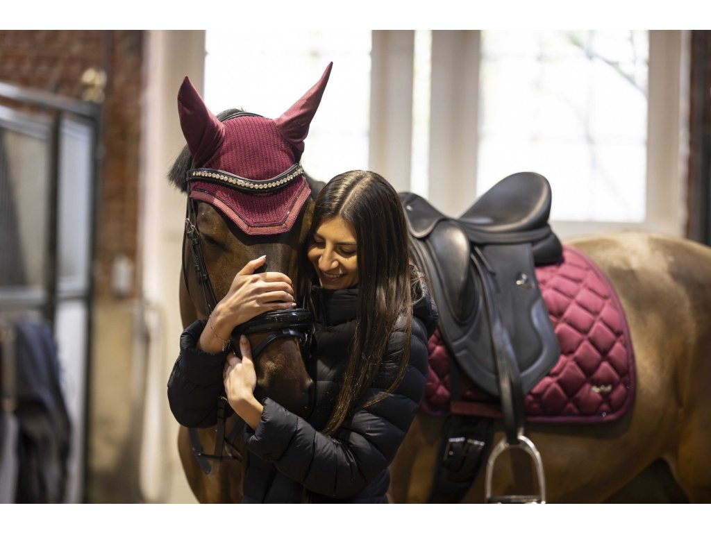 Kvalitní čabraka, která chrání uši koně proti mouchám. Čabraka je pletená a vyrobena z příjemného materiálu pro větší komfort. Skvěle ladí k podsedlové dečce Florence QHP.