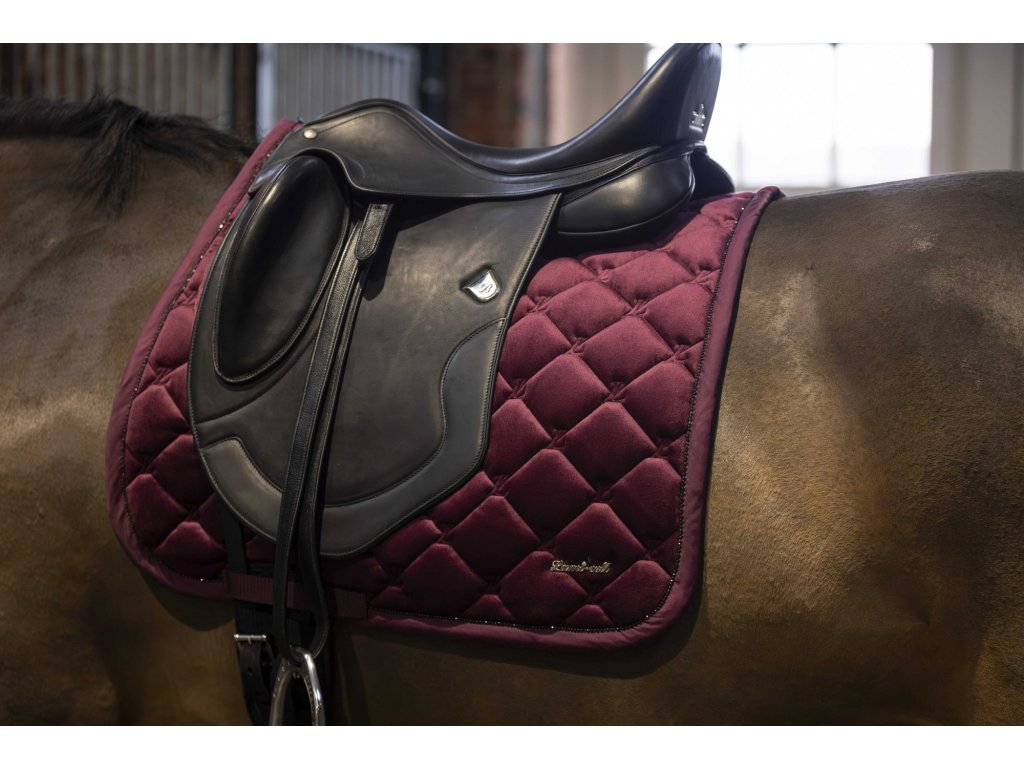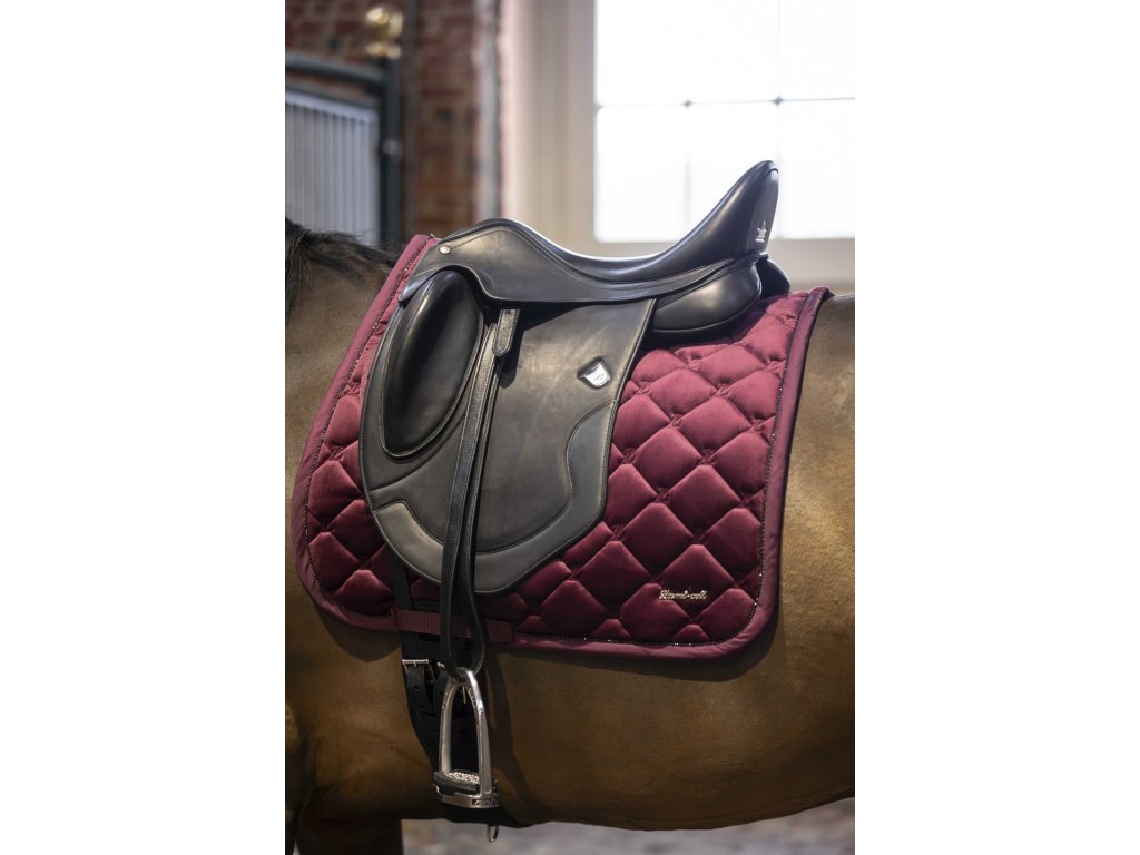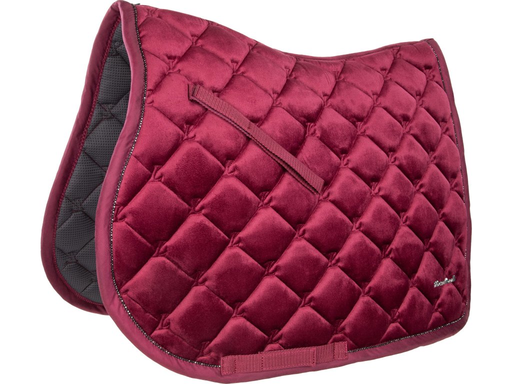 Elegantní podsedlová dečka, která představuje dokonalé spojení sofistikovaného vzhledu a vysokého komfortu pro koně. Pěna a výplň Synthermax zajišťují výborné tlumení nárazů a pohodlí, zatímco podšívka z bambusového uhlí má antibakteriální a termoregulační vlastnosti. Jemný matný povrch z polyesteru dodává dečce luxusní vzhled. Zdobena lemováním s kamínky a stříbrným logem. Praktická poutka na suchý zip umožňují bezpečné uchycení k sedlu. Dečku lze prát v pračce, nesmí se sušit v sušičce.