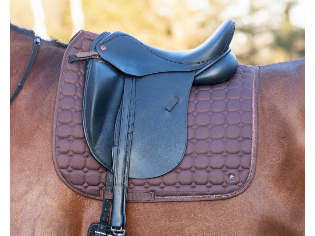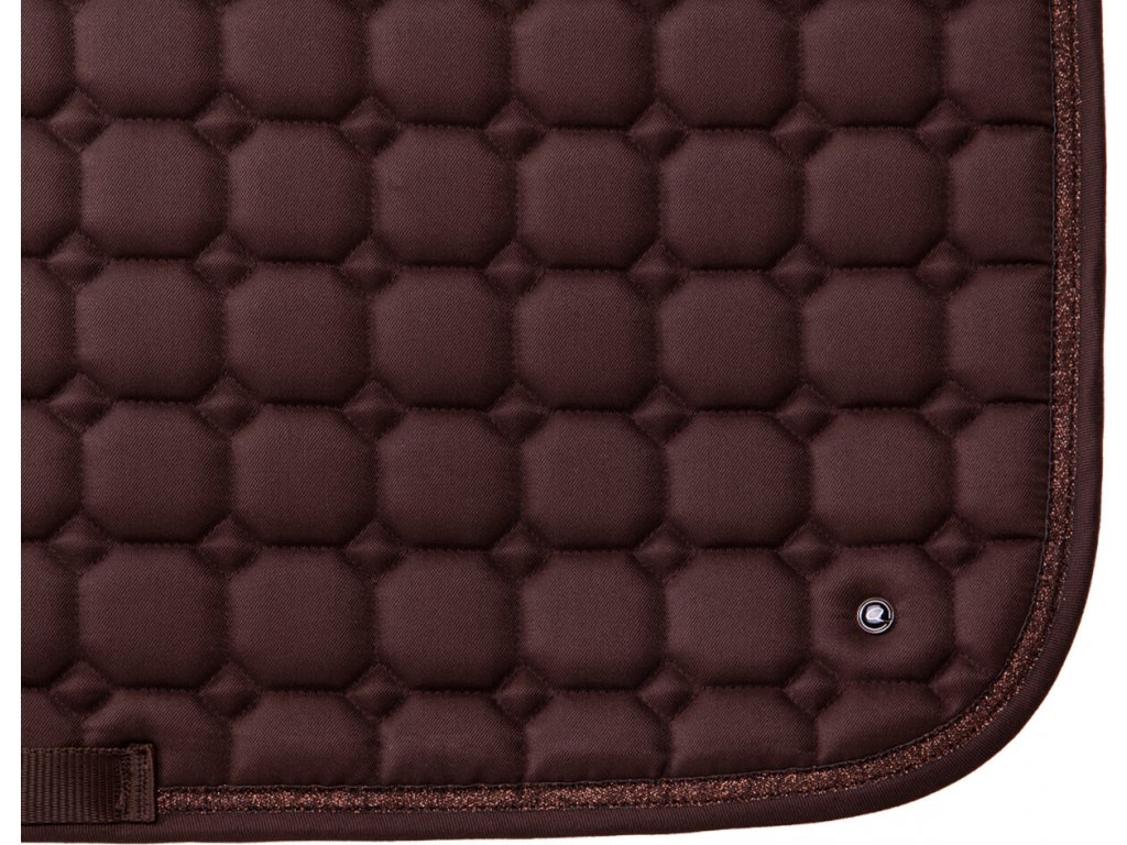 Anatomicky tvarované podsedlová dečka opatřena vysoce savou podšívkou. Opatřena je krátkými sedlovými poutkya poutky na podbřišník se suchým zipem. Zdobena je elegantním třpytivým lemem, krásným čtvercovým prošíváním a malým znakem Q na levé straně. Dečka je vhodná pro vlastní výšivku a je k dispozici ve více barevných variantách. Součástí kolekce Hailyn QHP.