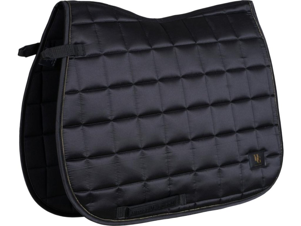 Anatomicky tvarovaná podsedlová dečka s elegantním lesklým saténovým designem a čtvercovým prošíváním. Dečka je opatřena měkkou pěnovou výplní pro maximální pohodlí. Podšitá je extra savým a rychleschnoucím materiálem Cool Dry. Vybavena je sedlovými poutky a poutky na podbřišník. Dečka má ozdobné zlaté lemování a logo značky. Dostupná i v bílé barvě a v drezurní variantě.