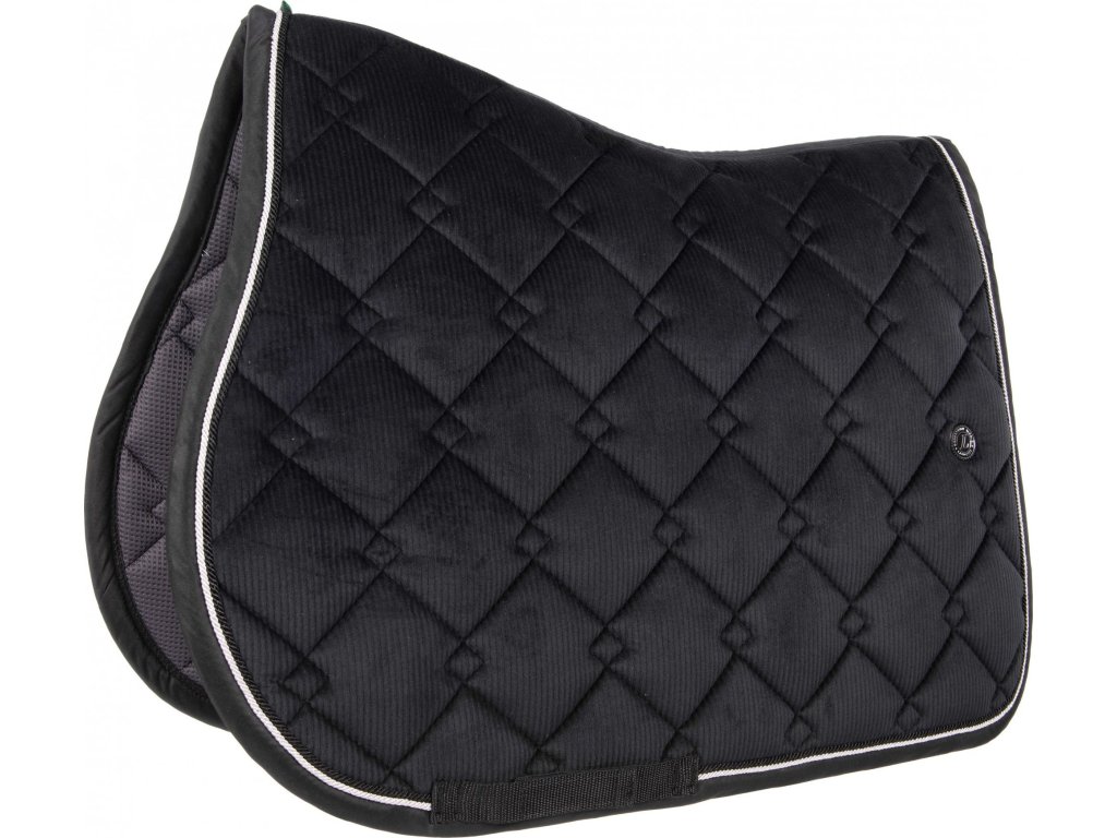 Semišová podsedlová dečka s elegantním prošíváním s 3D efektem. Podšívka je vyrobena z bambusového uhlí, které zajišťuje antibakteriální a termoregulační vlastnosti, čímž zvyšuje pohodlí a ochranu kůže koně. Zdobena kontrastní paspulkou. Vybavena poutky na podbřišník. Lze prát v pračce, nesušte v sušičce.