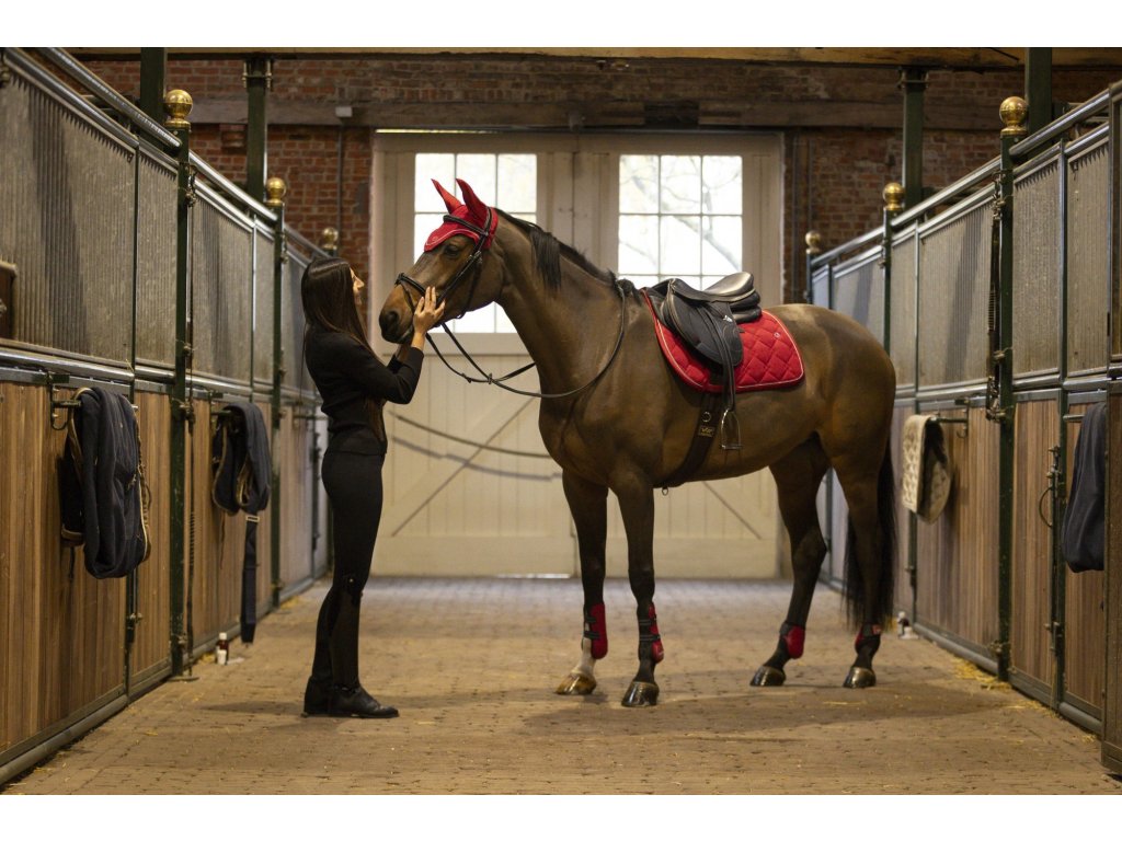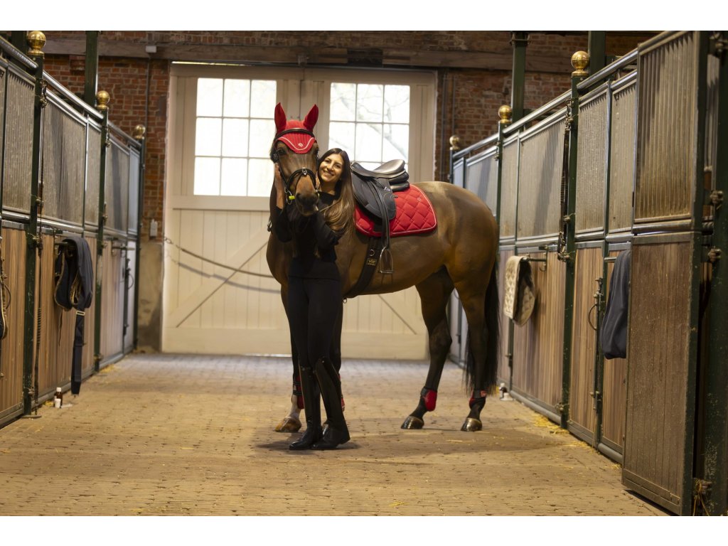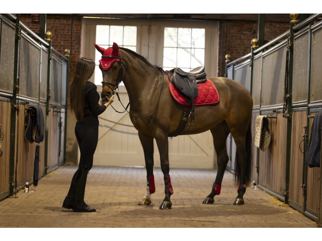 Kvalitní čabraka, chrání uši koně proti mouchám. K dispozici v deseti různých barvách se stříbrným a šedým lemováním. Lze sladit s podsedlovou dečkou Puff.