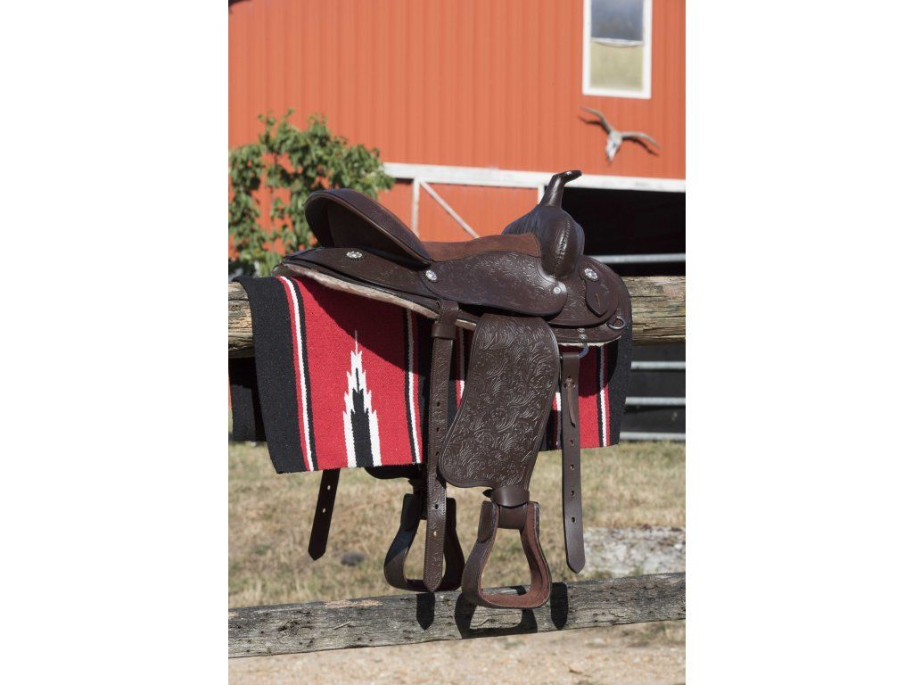 Tradiční westernová dečka se stylovým vzorem je vyrobena ze směsi bavlny a polyesteru. Materiál spojuje prodyšnost a odolnost. Díky svému dekorativnímu vzhledu a funkčnímu zpracování je ideální pro každodenní ježdění i slavnostní příležitosti. Hodí se jako samostatná dečka pod sedlo, tak i jako vnější vrstva na podsedlovou dečku. Rozměry: 76 x 76 cm. Doporučená péče: pouze ruční praní ve vlažné vodě s použitím jemného pracího prostředku. Neždímat, nežehlit, nechat volně uschnout.