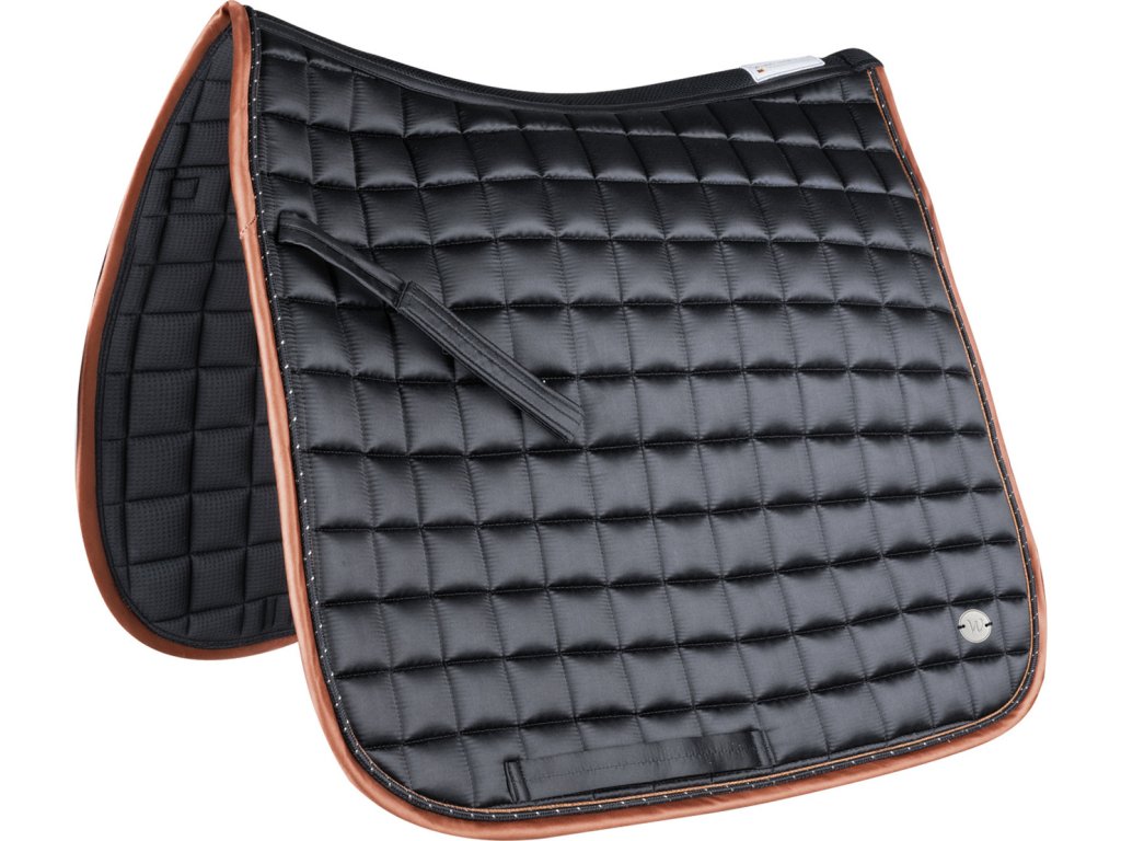 Kvalitní podsedlová dečka zdobena kontrastním lemem. Dečka působí elegantním dojmem, díky lesklému svrchnímu materiálu. Podél páteře je dečka vybavena síťovou vložkou, která zajišťuje lepší prodyšnost a cirkulaci vzduchu. Zdobeno decentním odznáčkem s logem Waldhausen.