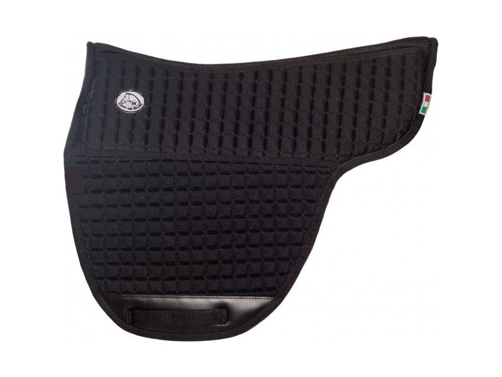 Podsedlová vykrojená dečka vyrobena speciálně pod jezdecké pady Brockamp. Lze použít i pod jiné jezdecké pady či pod bezkostrová sedla. S touto dečkou dotáhnete jízdu bez sedla k naprosté dokonalosti. Součástí dečky jsou vnitřní výplně, které umožňují snadnou úpravu nerovností. Spodní část dečky je vyrobená z bavlněného materiálu. Vrchní část je z prodyšného Air mesh materiálu. Air mesh materiál je použitý ve třech vrstvách - odvádí vlhkost, cirkuluje vzduch a odvádí přebytečné teplo. Jezdecké pady Brockamp lze použít i bez podsedlové dečky, ale v případě, že pad nesedí, tak jak by měl, doporučujeme zvolit právě tuto podsedlovou dečku. Vhodná např. pro kulatější koně. Vyrábí se ve velikosti FULL.