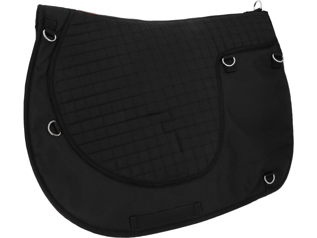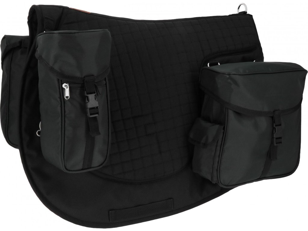 Praktická podsedlová dečka se 4 kapsami, která je vhodná na dlouhé vyjížďky a treky díky kombinaci pohodlí a praktičnosti. Tato inovativní dečka eliminuje potřebu samostatných tašek a umožňuje bezpečně převézt vše potřebné přímo na koni. Kapsy poskytují dostatek prostoru bez narušení rovnováhy. Dvě velké zadní kapsy pojmou větší předměty jako pláštěnka, jídlo nebo lékárničku, zatímco dvě menší přední kapsy jsou ideální pro telefon, klíče, kopytní háček nebo svačinu s rychlým přístupem. Pevné klopy chrání obsah i při cvalu nebo trysku v náročném terénu. Anatomický tvar dokonale kopíruje tvary hřbetu koně, rovnoměrně rozkládá tlak a zabraňuje otlakům. Má vyšší výstupek pro kohoutek pro ochranu citlivé oblasti. Kvalitní vnitřní polstrování absorbuje nárazy, prodyšná spodní vrstva odvádí vlhkost a podporuje cirkulaci vzduchu. Tašky lze v případě potřeby odepnout.