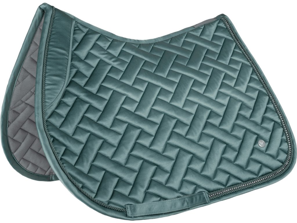 Elegantní podsedlová dečka Turin je vyrobena z vysoce kvalitního lesklého materiálu a nabízí nejen elegantní vzhled, ale také vysokou funkčnost. Vnitřní síťovaná podšívka z chladivého bambusového a polyesterového vlákna zajišťuje optimální regulaci vlhkosti a vysokou prodyšnost. Bambusová podšívka je antibakteriální, šetrná k pokožce koně a přispívá k maximálnímu komfortu při každodenním používání. Design dečky podtrhuje třpytivé lemování kamínky a dvěma paspulkami, stejně jako elegantní stříbrná kovová destička s logem výrobce. Praktická poutka na podbřišník zajišťují bezpečné uchycení a stabilitu dečky pod sedlem.