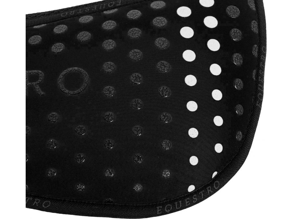 Vysoce kvalitní tlumící dečka Equestro s paměťovou pěnou, inovativní a jedinečný design. Dečka vyrobena z pěnové pryže se silikonovým gripovým systémem. Je výsledkem intenzivního a podrobného výzkumu provedeného v chovatelské stanici Fonte Abeti, který vedl k zdůraznění potřeby jezdce pro nejlepší pohodlí a absorpci nárazů během tréninku a soutěží. Díky silikonovému motivu zlepšuje usazení sedla, výrazně napomáhá rovnoměrně rozložit tlak od sedla, uvolňuje napětí svalů, které může pod sedlem vznikat. Částečné lemování umělým beránkem je ideální pro prevenci odřenin a puchýřů. Skvěle přiléhá, je velmi pohodlná, zajišťuje nepřekonatelný komfort a stabilitu. Zdobena bílým logem Equestro. Dostupná v mnoha barvách. Vyrábí se v jedné velikosti.