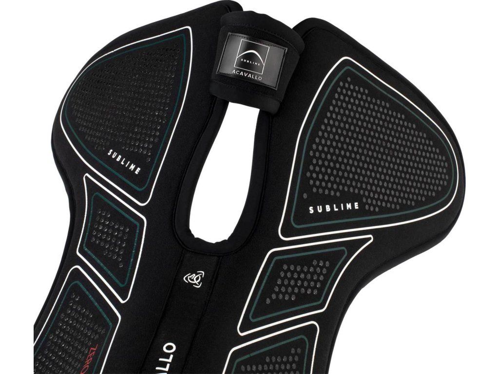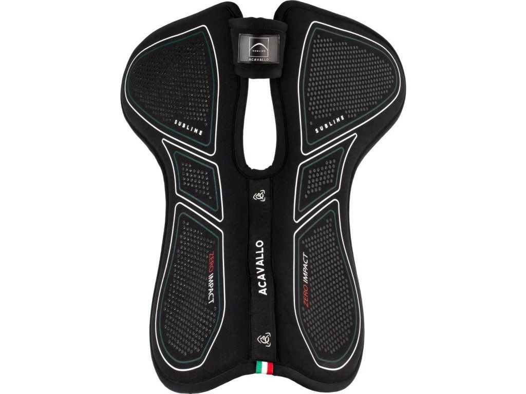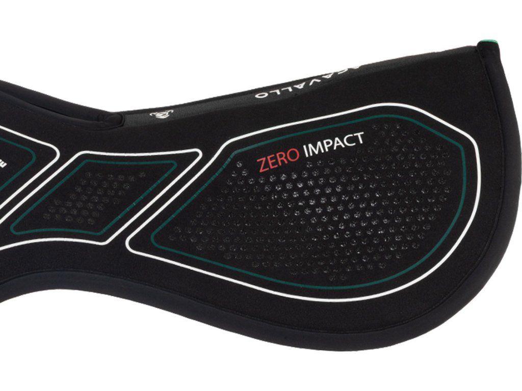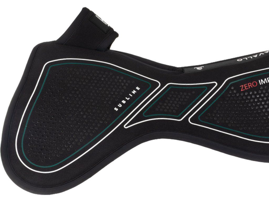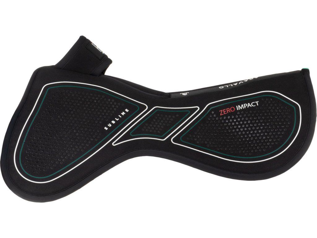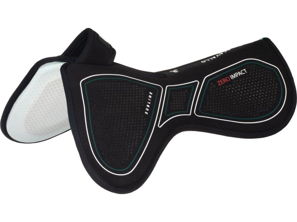 Tlumící dečka pod sedlo „Sublime Zero Impact“ se zesílenou přední částí (riserem) a volným kohoutkem je navržena tak, aby poskytovala cílenou anatomickou podporu a zlepšila vyvážení sedla, čímž maximálně ulevuje tlaku na kohoutek. Kombinace pokročilých technických materiálů zajišťuje účinné tlumení nárazů a kompletní ochranu. Díky tomu je podložka ideální pro koně, kteří vyžadují korekci polohy sedla. Vnitřní vrstva je vyrobena z paměťové pěny s vysokou hustotou (90 kg/m³) o tloušťce 16 mm, která zaručuje výjimečné rozložení tlaku a vynikající odpružení. Perforovaný povrch zlepšuje prodyšnost, zatímco silikonové vložky zabraňují klouzání sedla během jízdy. Dečka je navržena v univerzální velikosti COB/FULL.