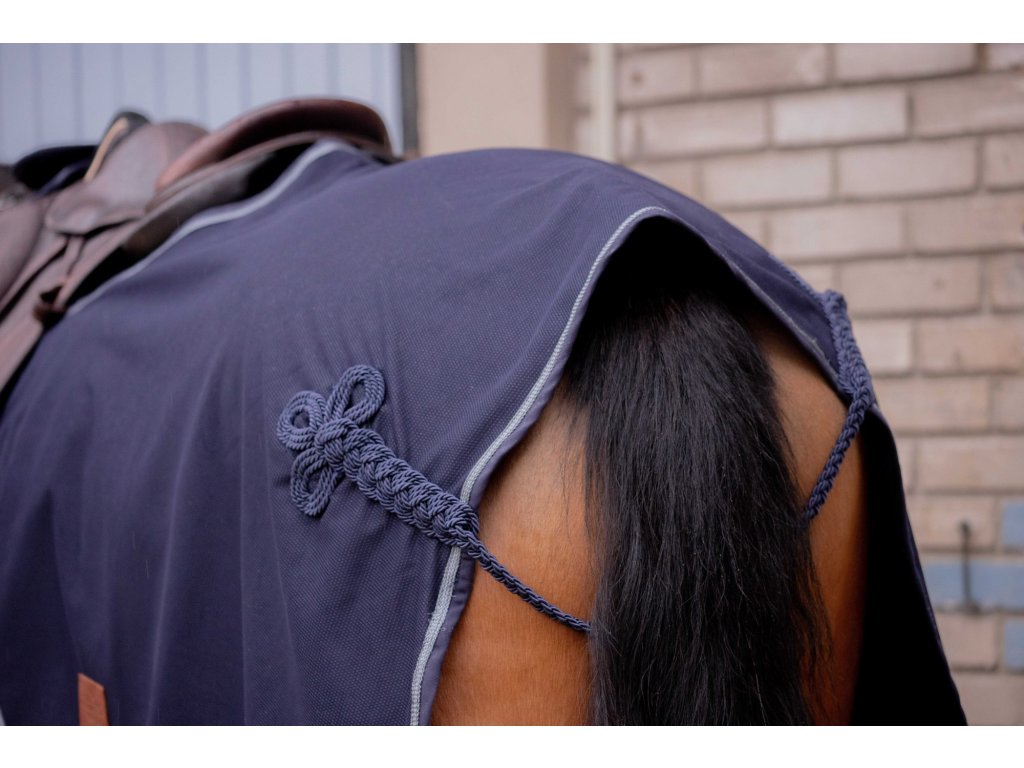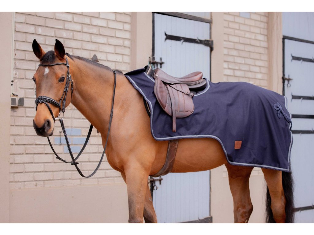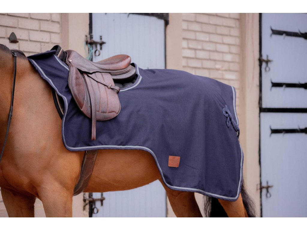 Tato bederní deka je praktický doplněk určený pro použití při ježdění i v chladnějším nebo deštivém počasí. Je vyrobena z nepromokavého materiálu a z vnitřní strany je podšitá tenkou vrstvou fleecu, který zajišťuje příjemné teplo a komfort pro koně. Deka se snadno zapíná za přední část sedla pomocí širokého suchého zipu. Zároveň je vybavena popruhem pod ocas, který zaručuje stabilní uchycení při pohybu. Vnější voděodolná úprava chrání koně před vlhkostí, zatímco univerzální střih umožňuje pohodlné používání pro každodenní práci. Pro zachování vzhledu doporučujeme prát v studené vodě na program „vlna“ a nechat volně uschnout – nepoužívejte sušičku.